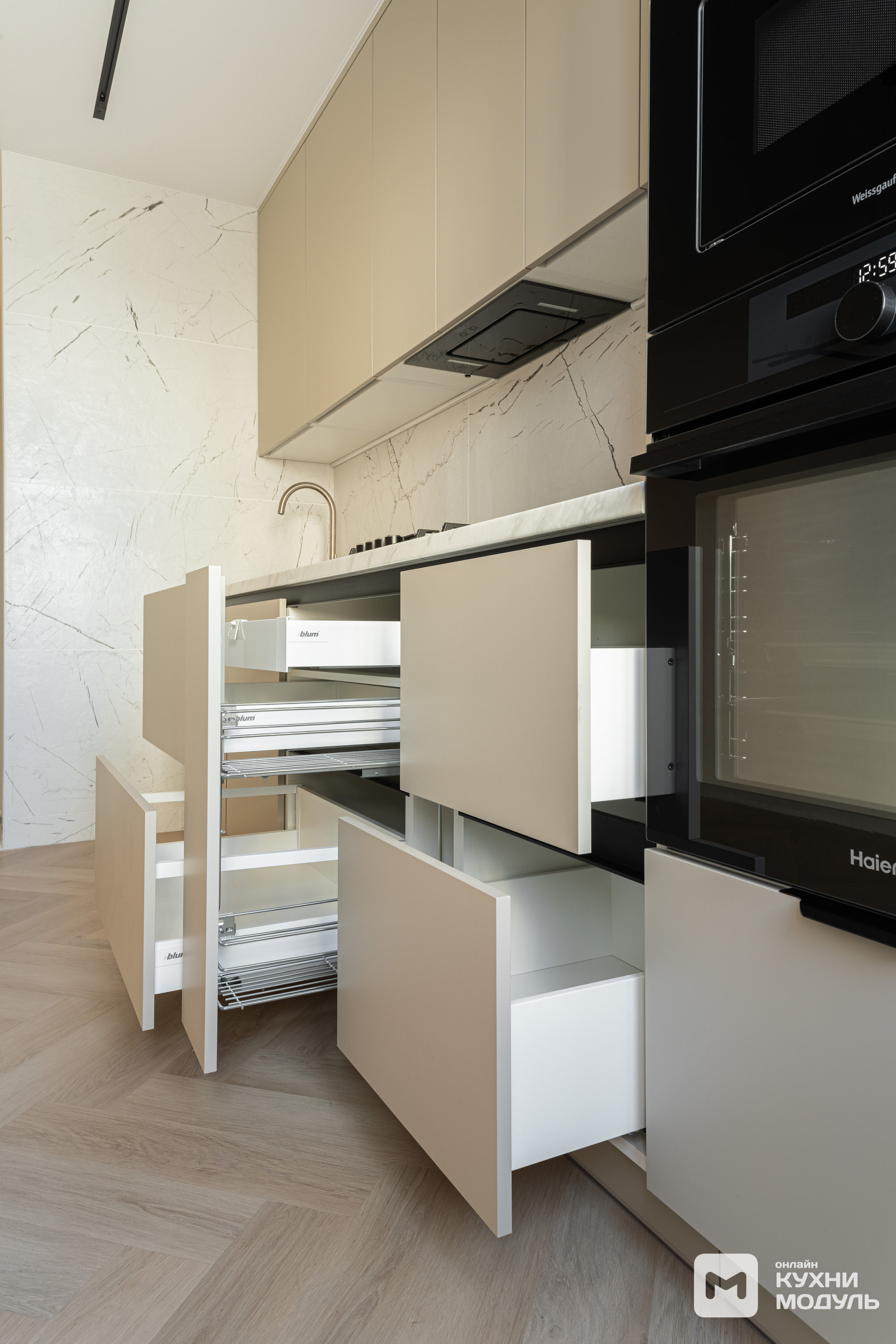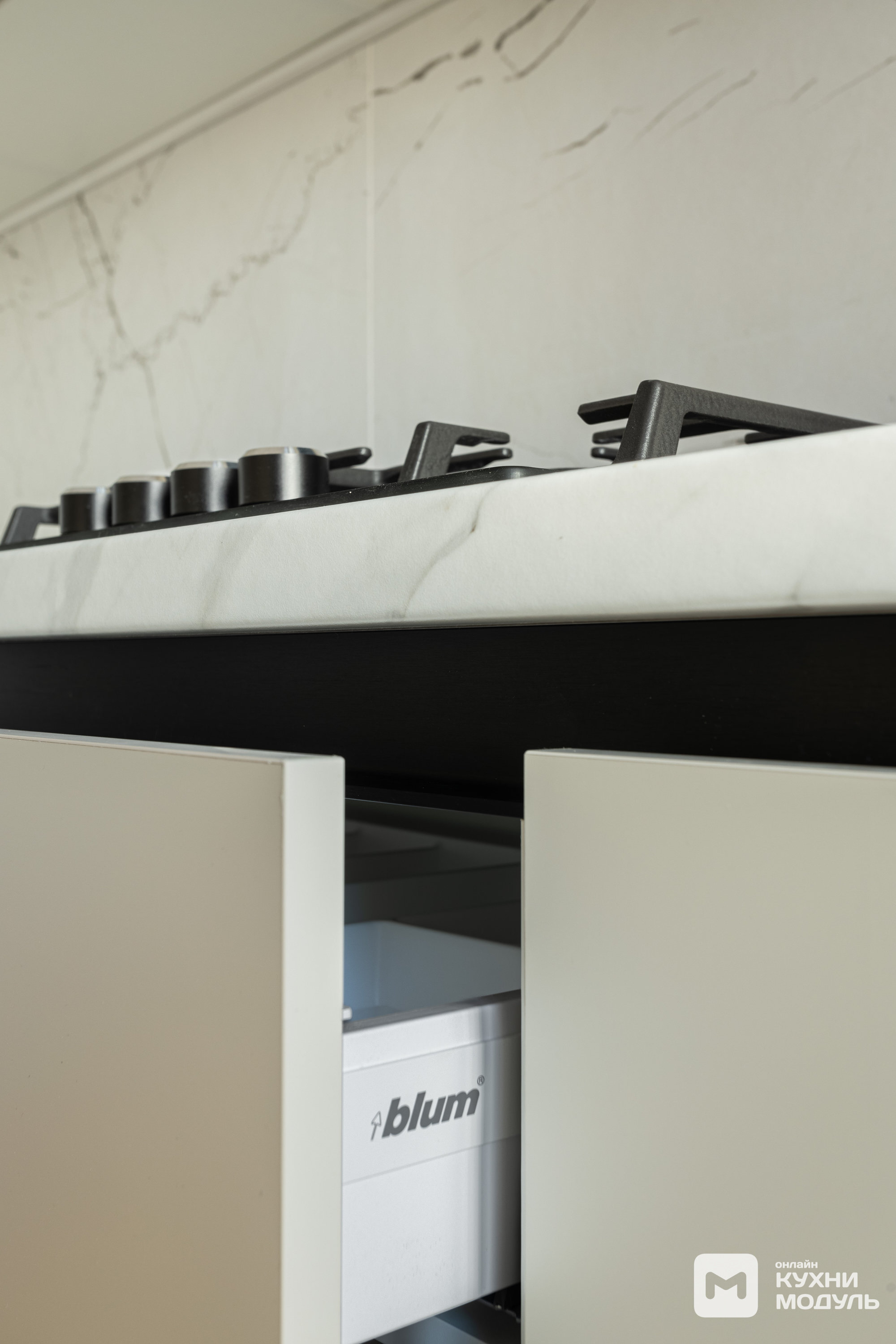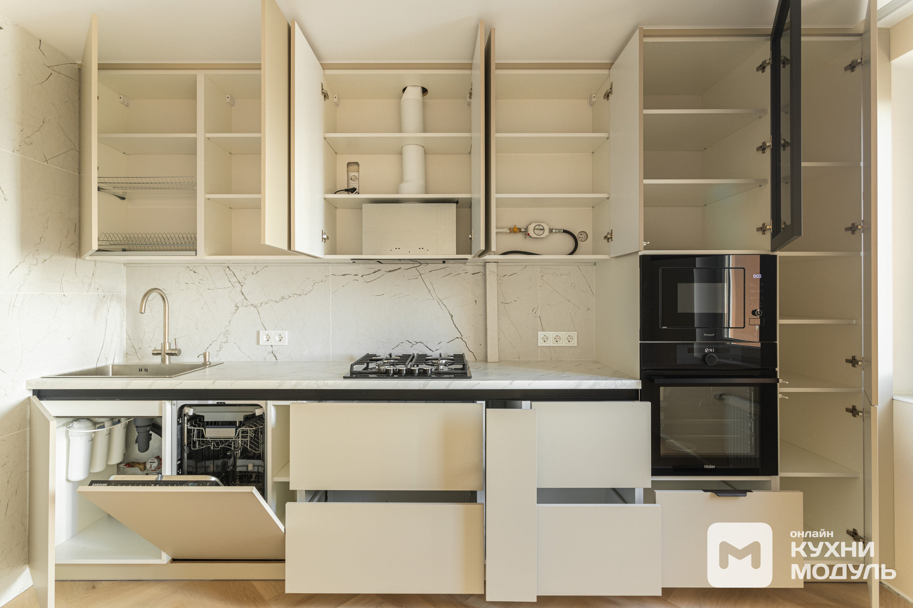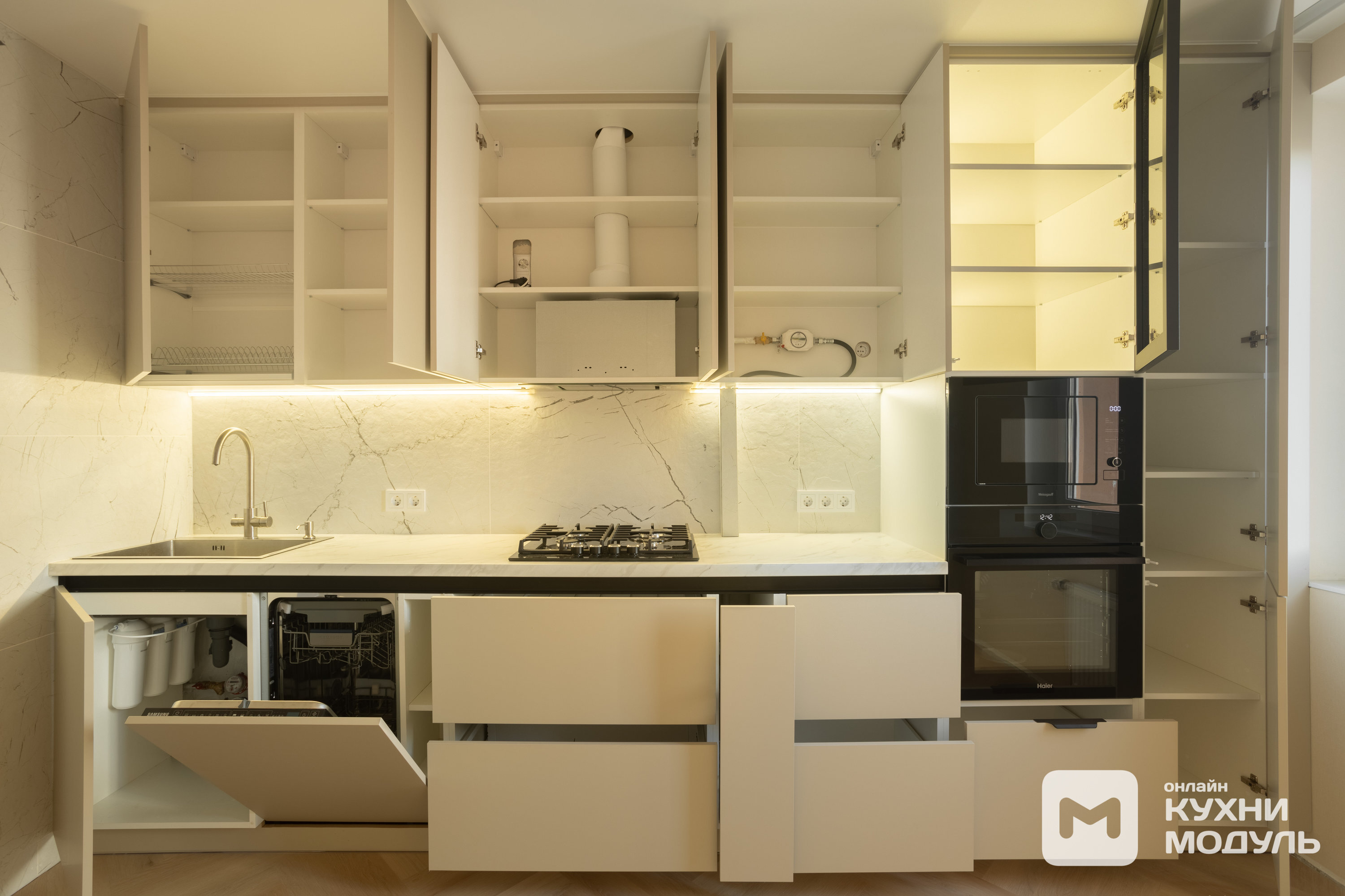 Благодаря типовым размерам и оптимизации производства кухня получается до 40% дешевле, чем изготовленная на заказ.