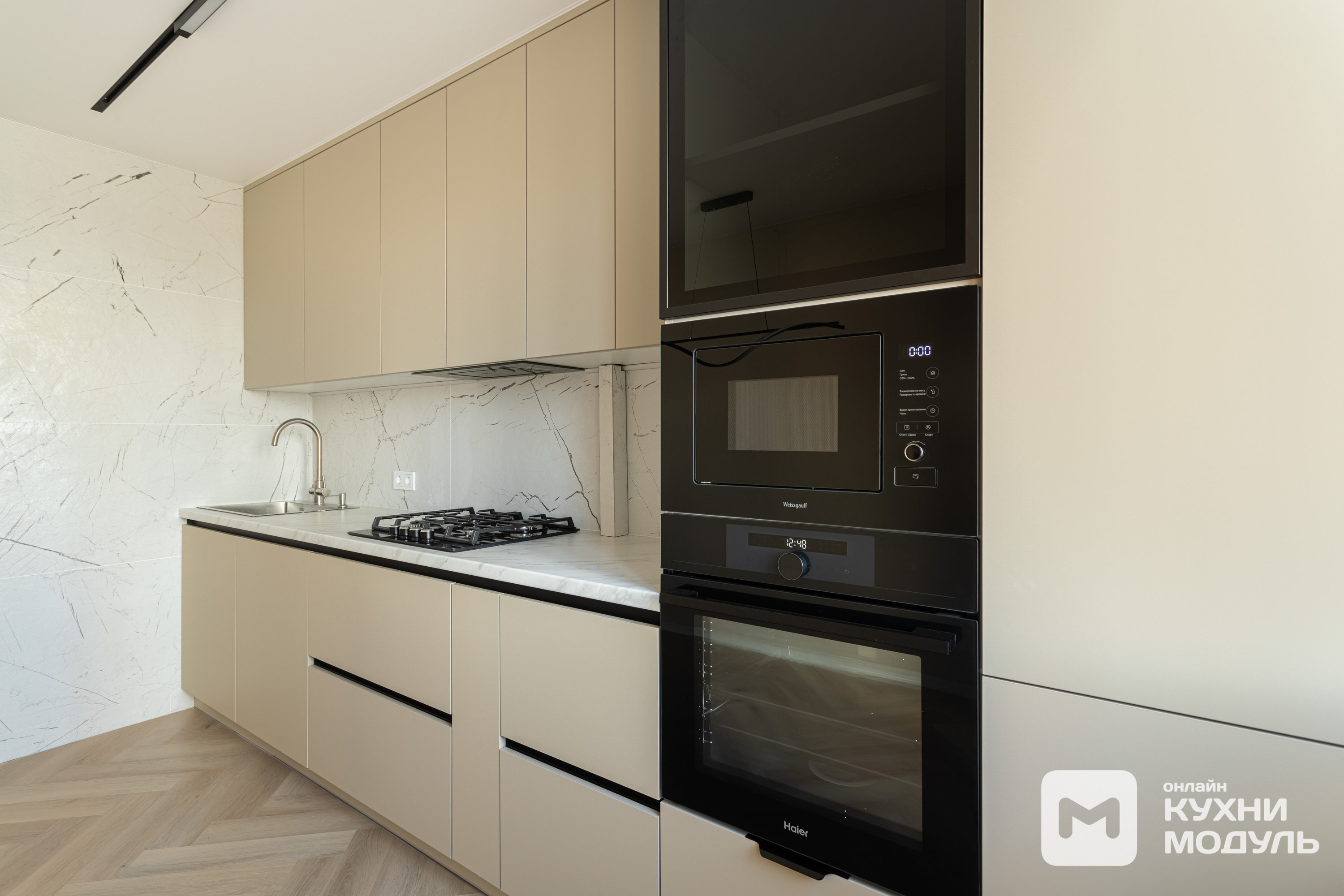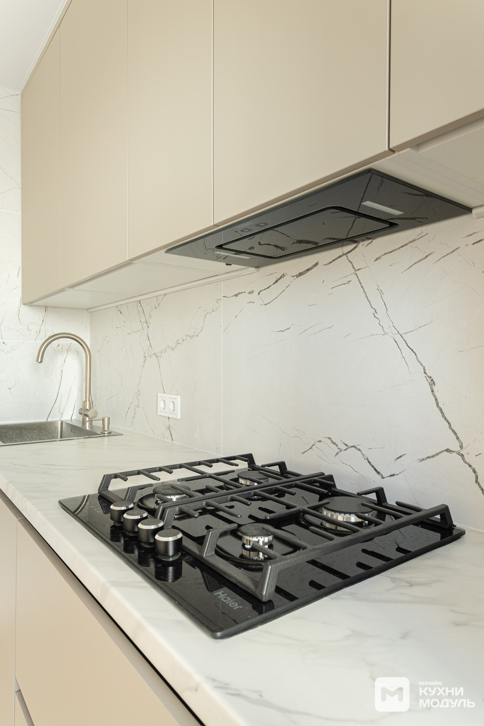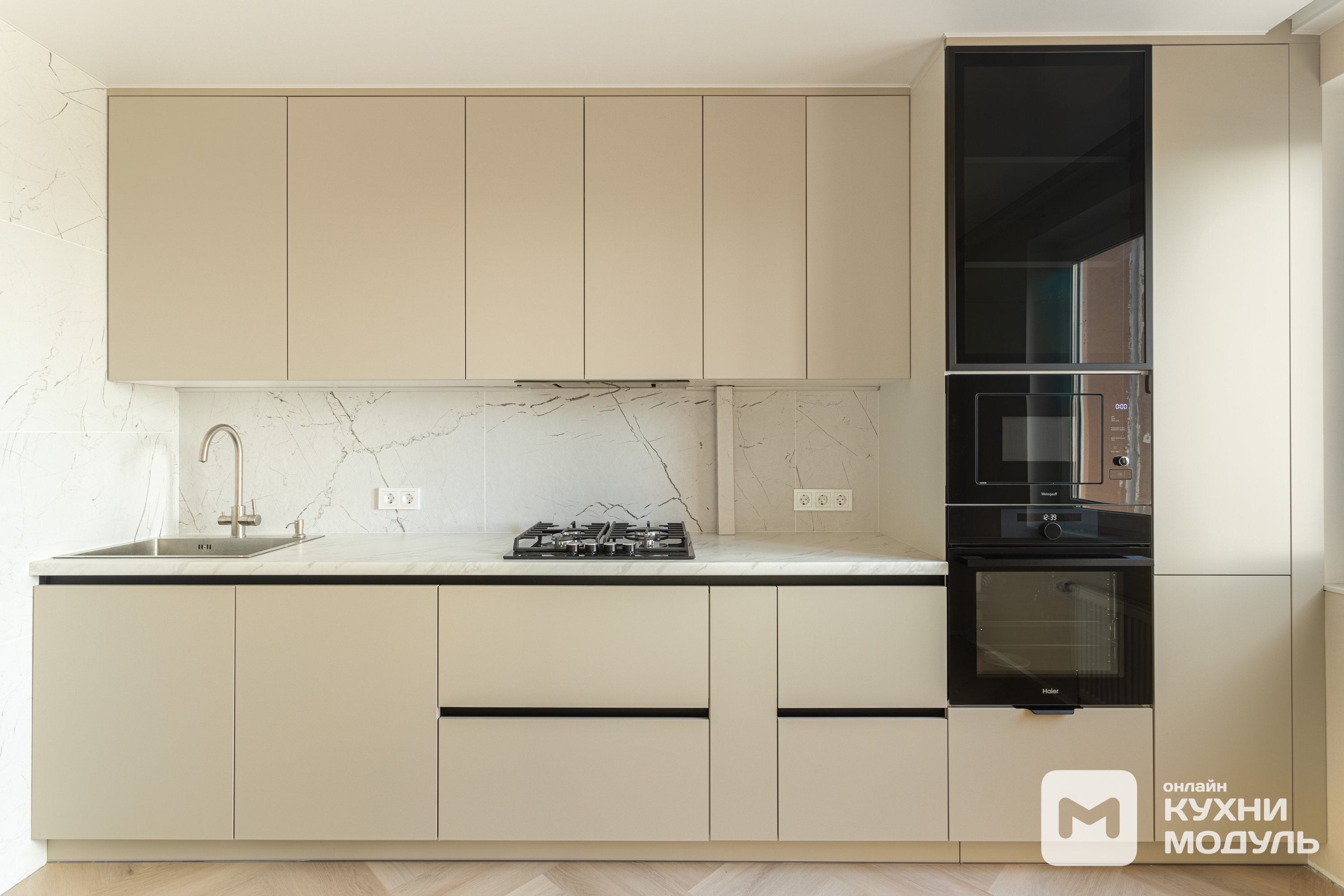 Кухня поставляется со всем необходимым, включая столешницу. Дополнительно подберем бытовую технику и сантехнику.