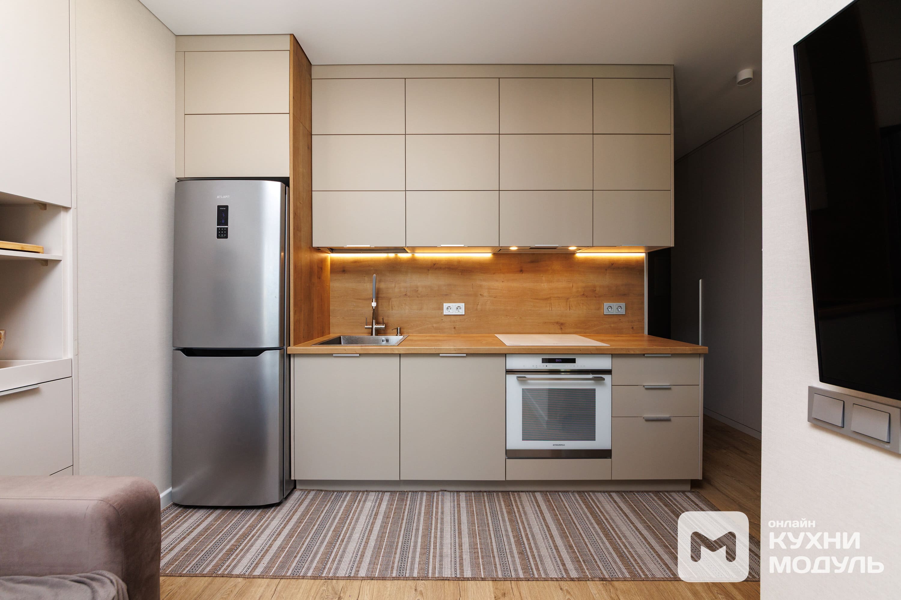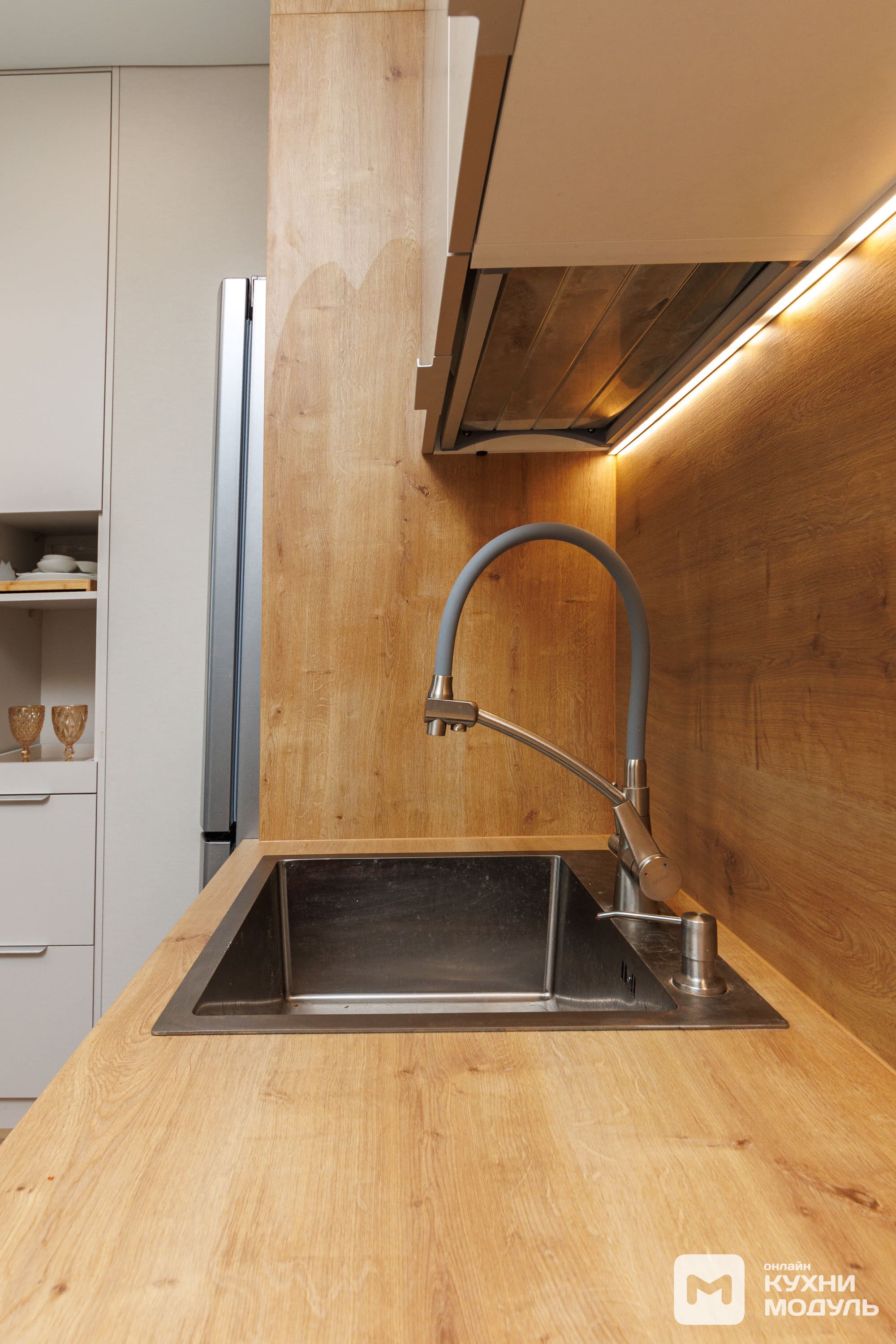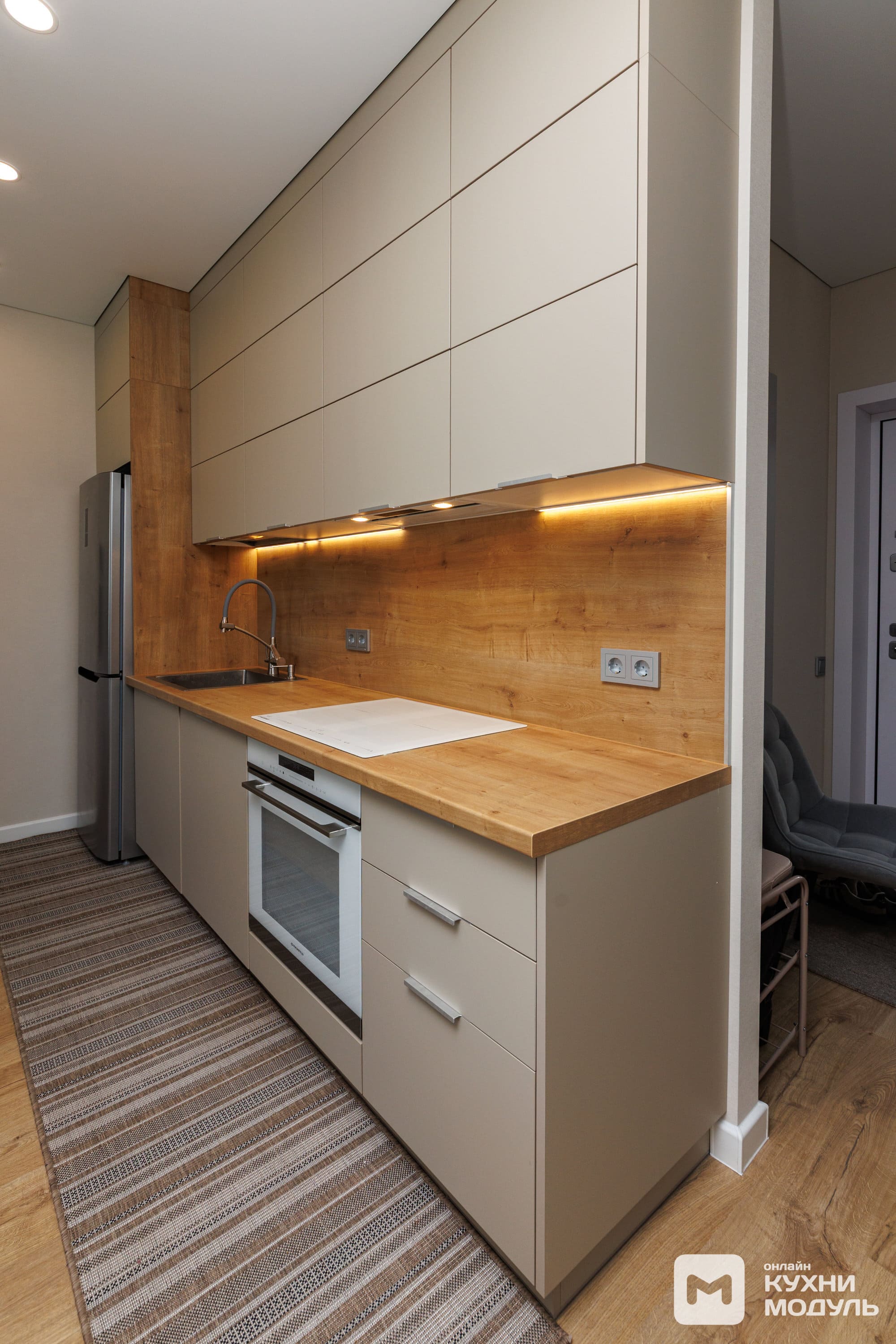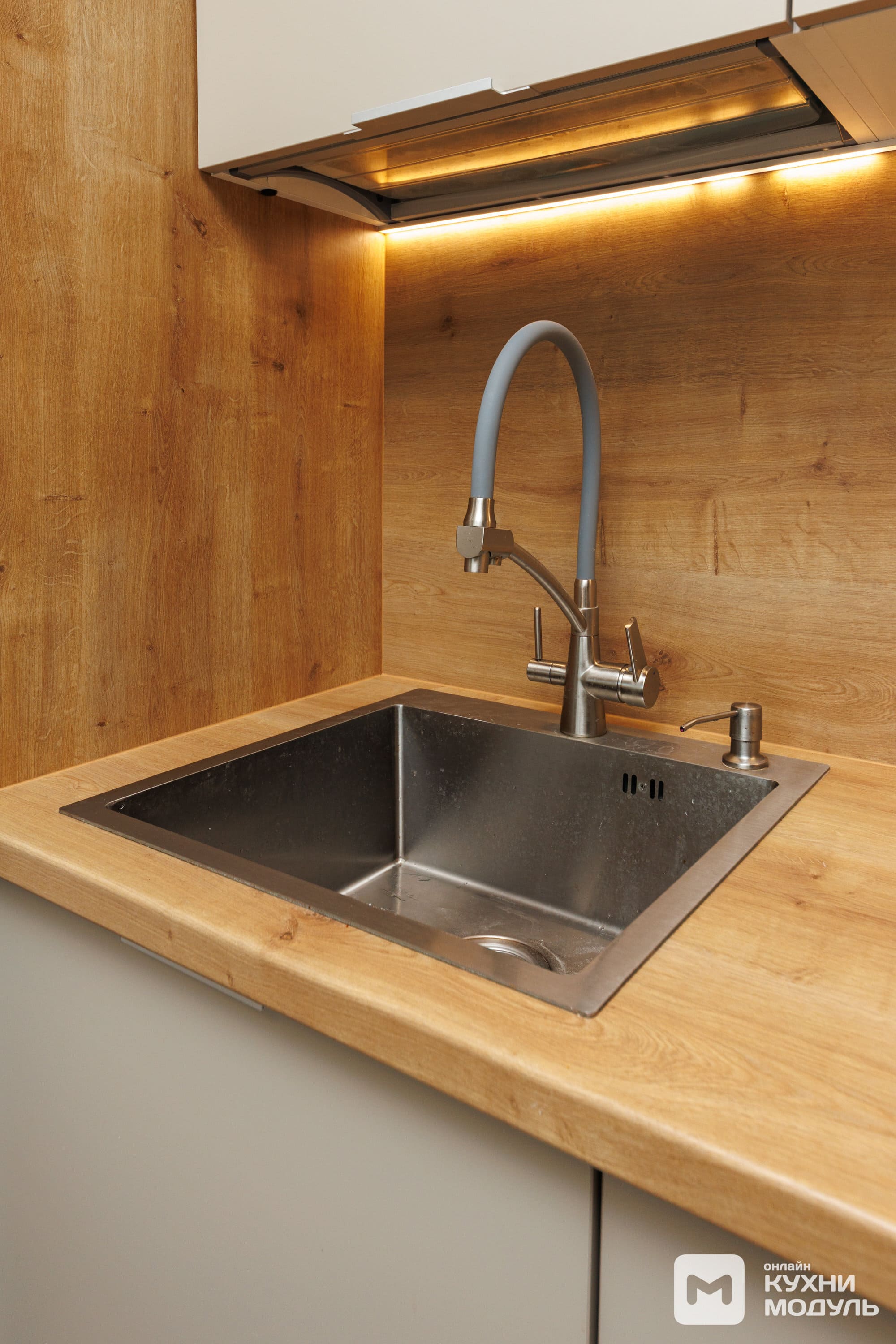 Кухня поставляется со всем необходимым, включая столешницу. Дополнительно подберем бытовую технику и сантехнику.