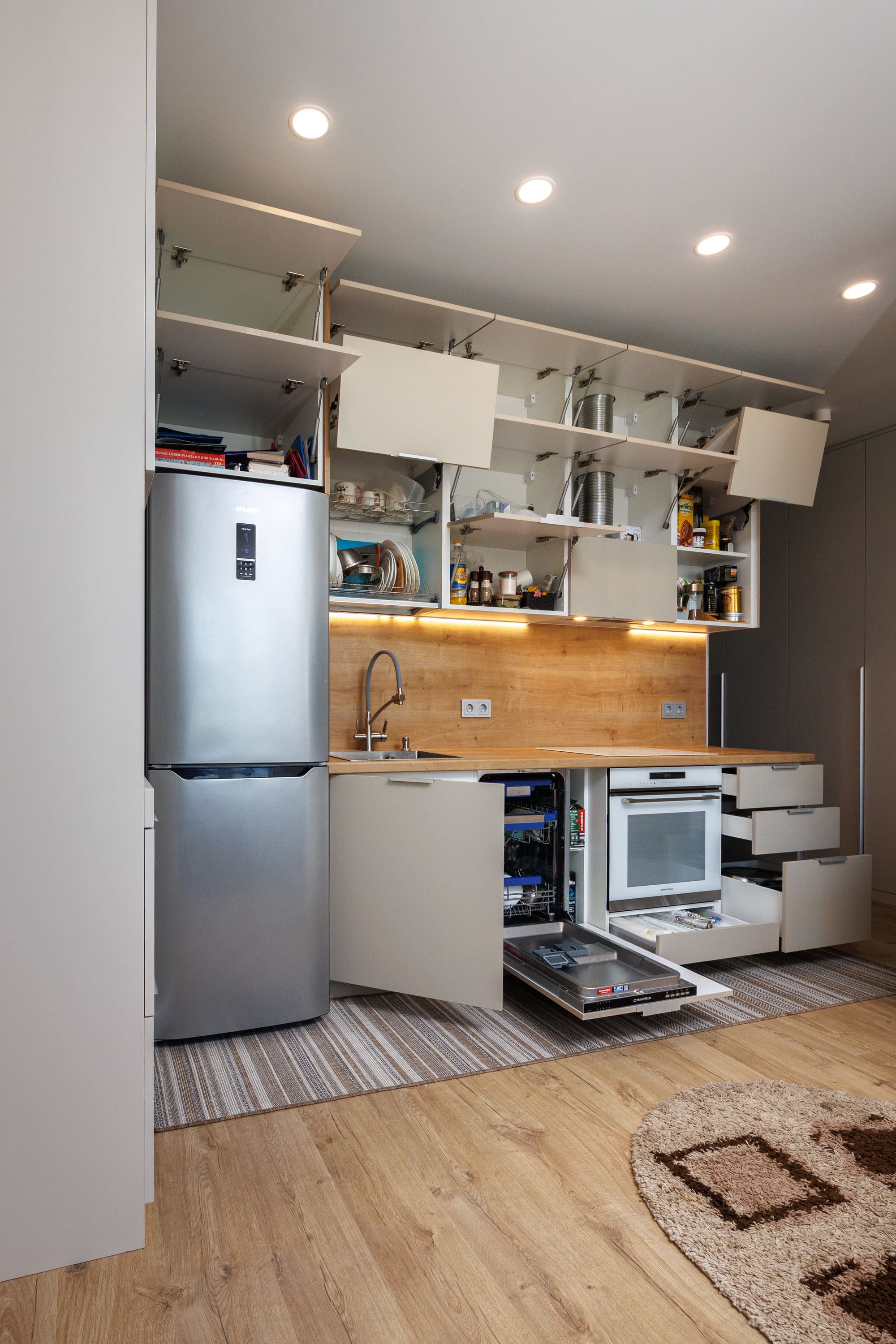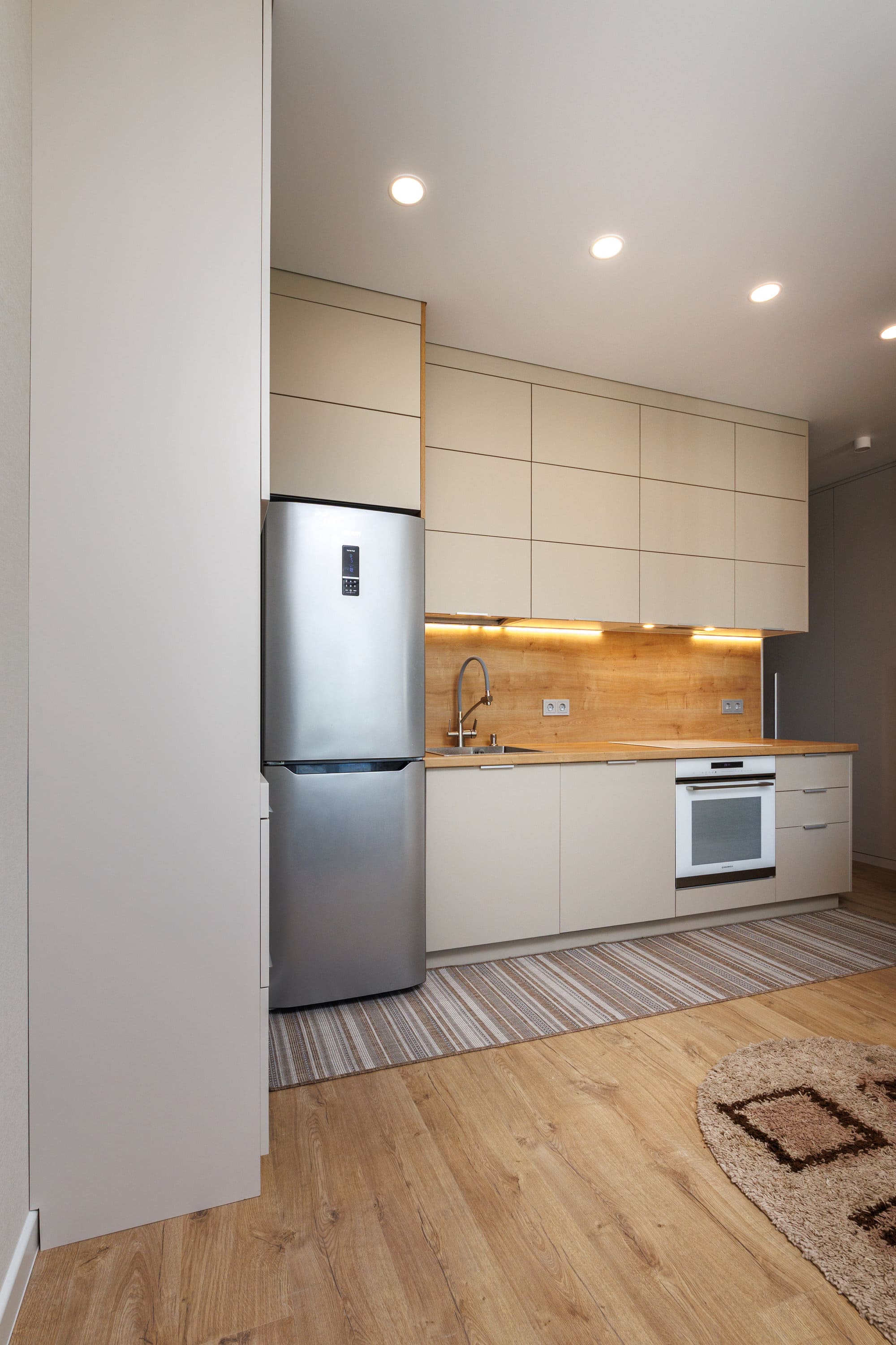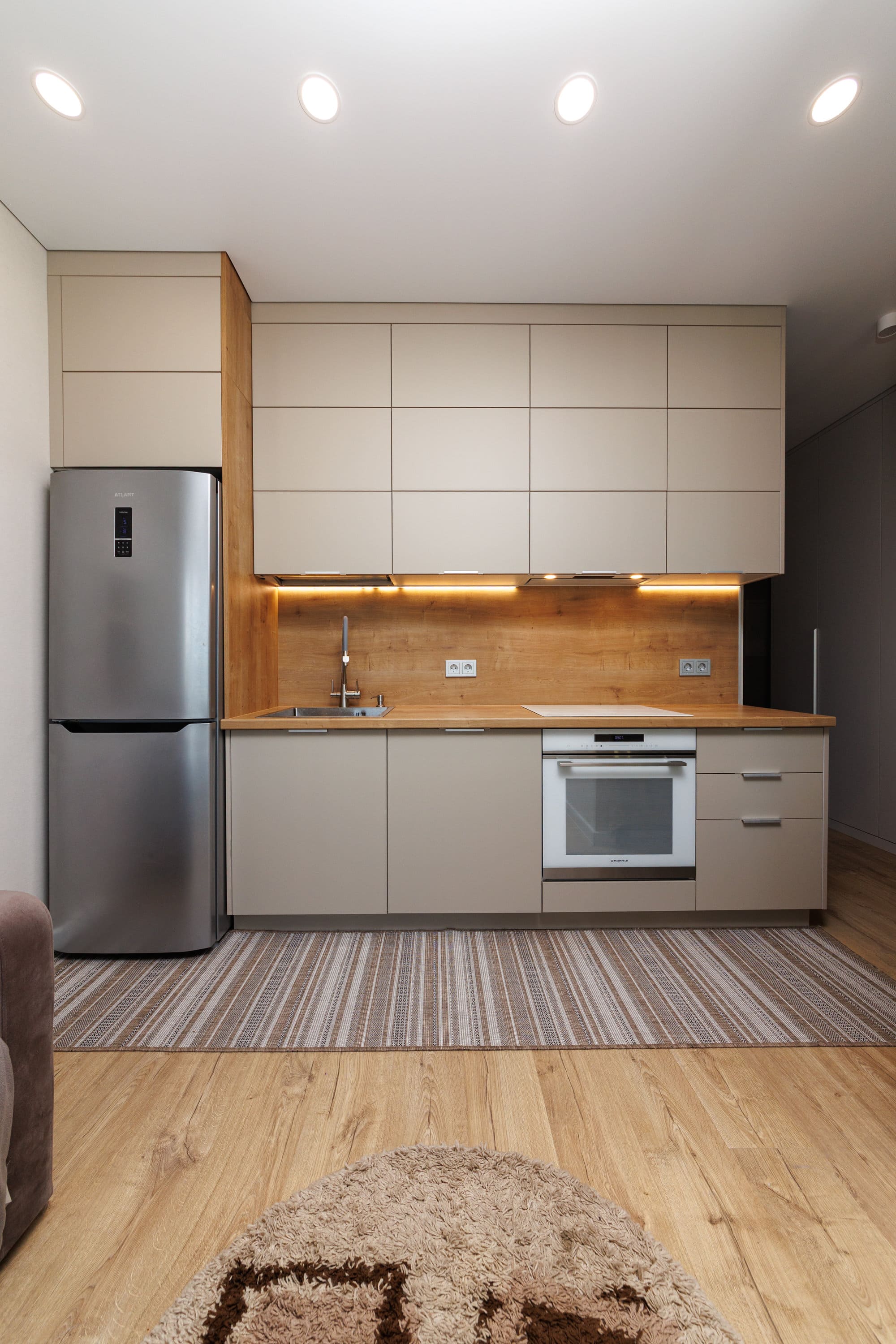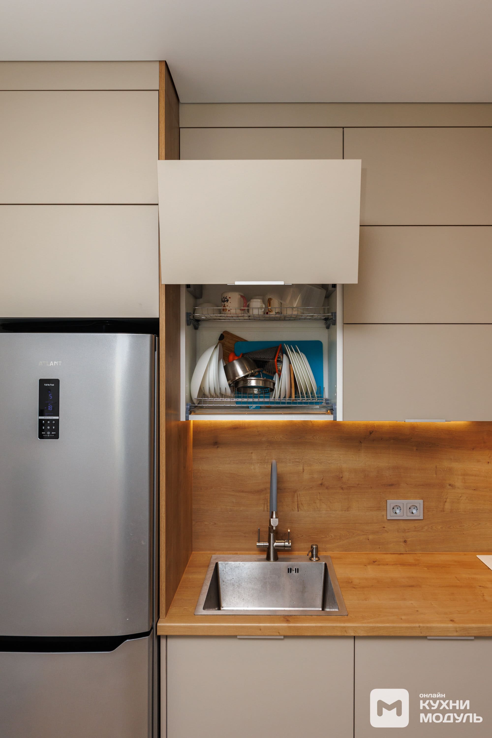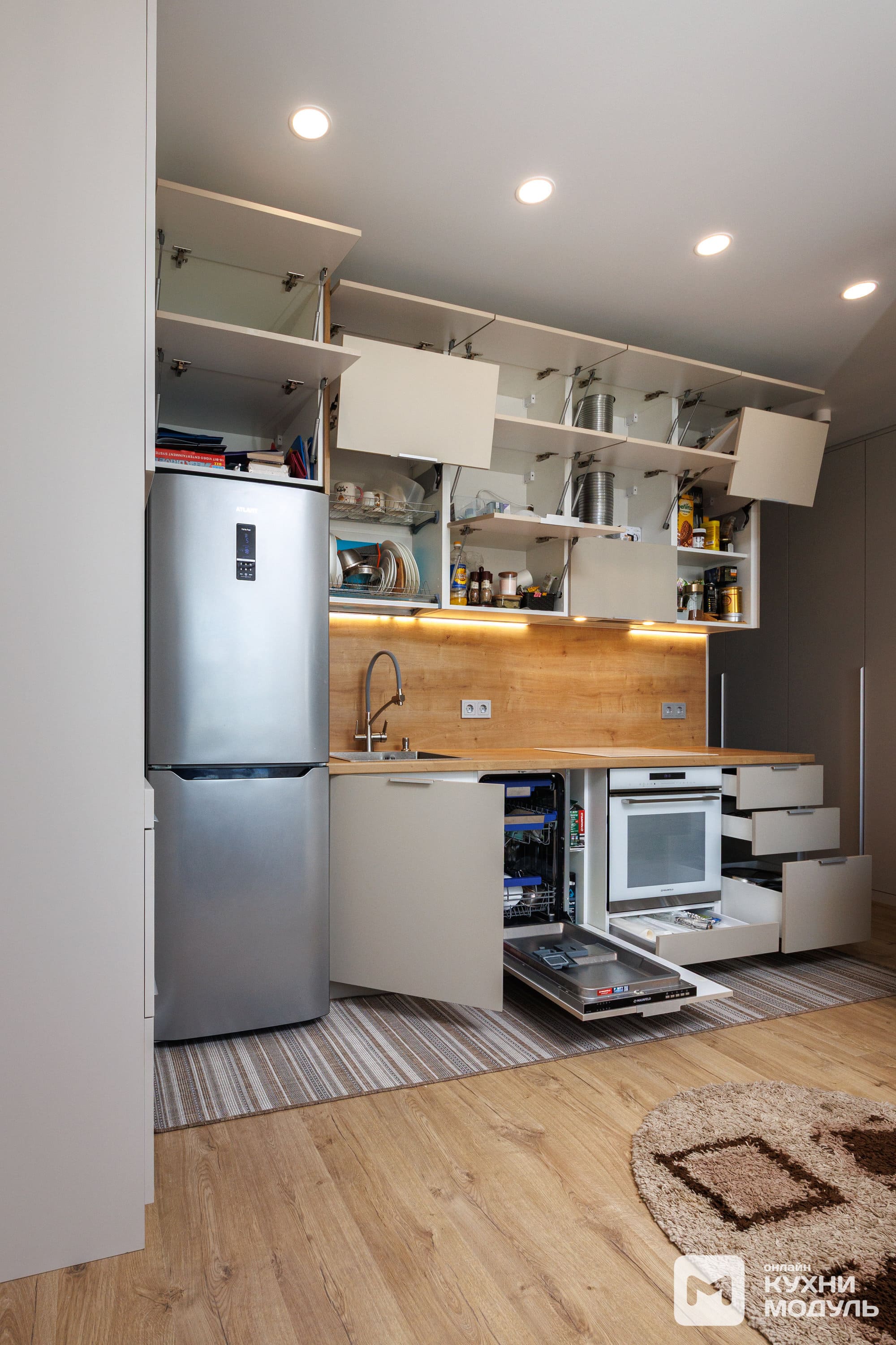 Кухня поставляется со всем необходимым, включая столешницу. Дополнительно подберем бытовую технику и сантехнику.