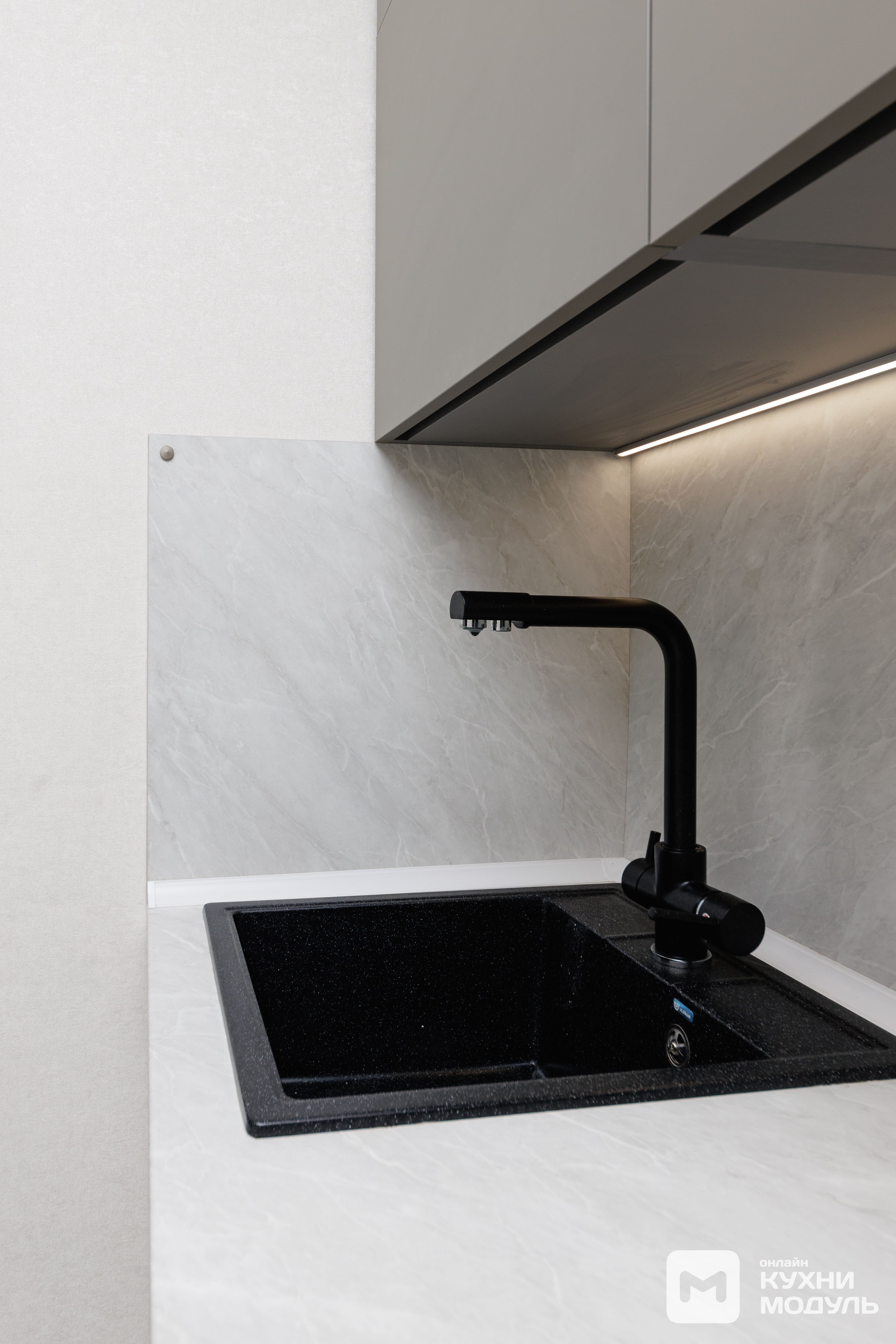 Кухня поставляется со всем необходимым, включая столешницу. Дополнительно подберем бытовую технику и сантехнику.