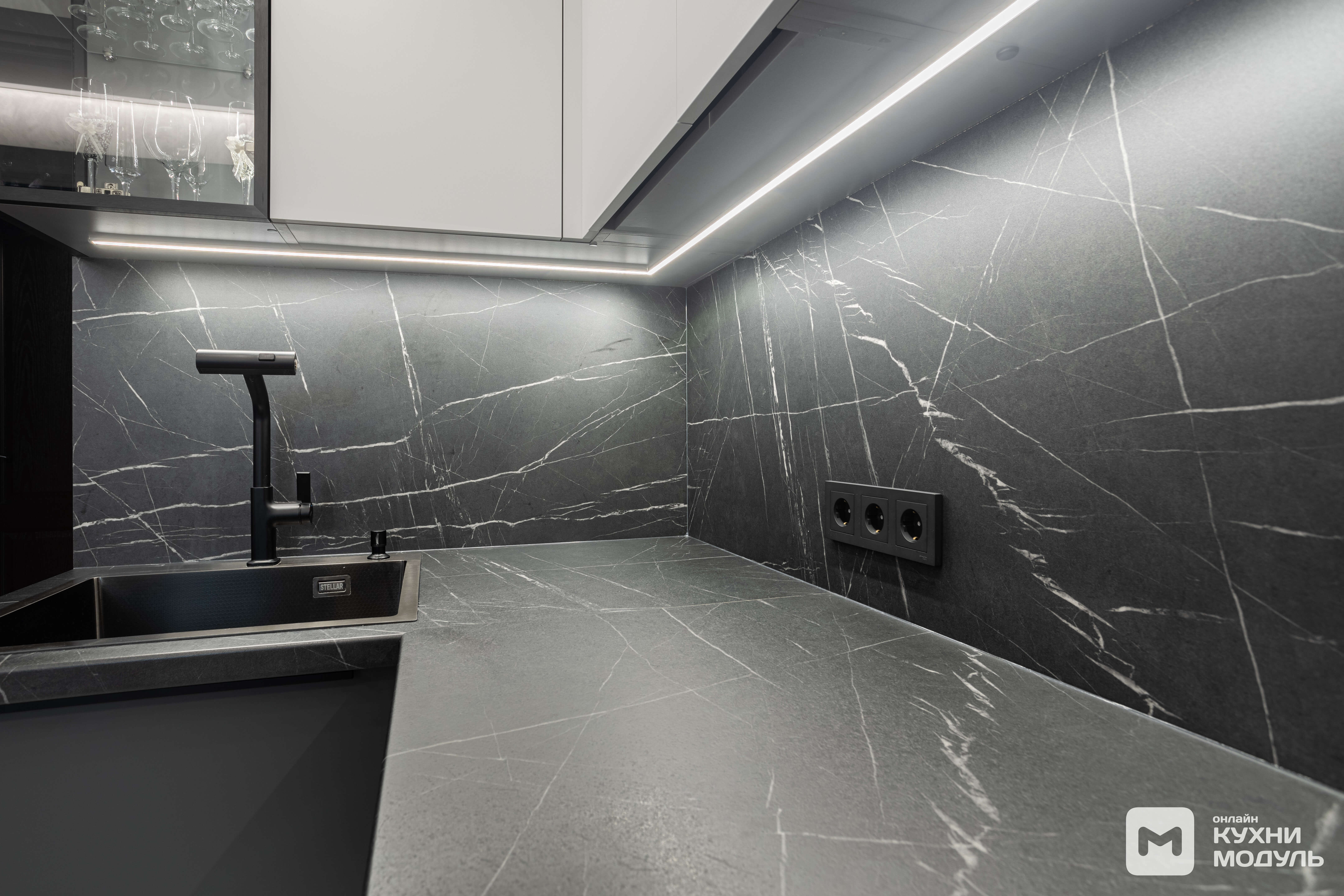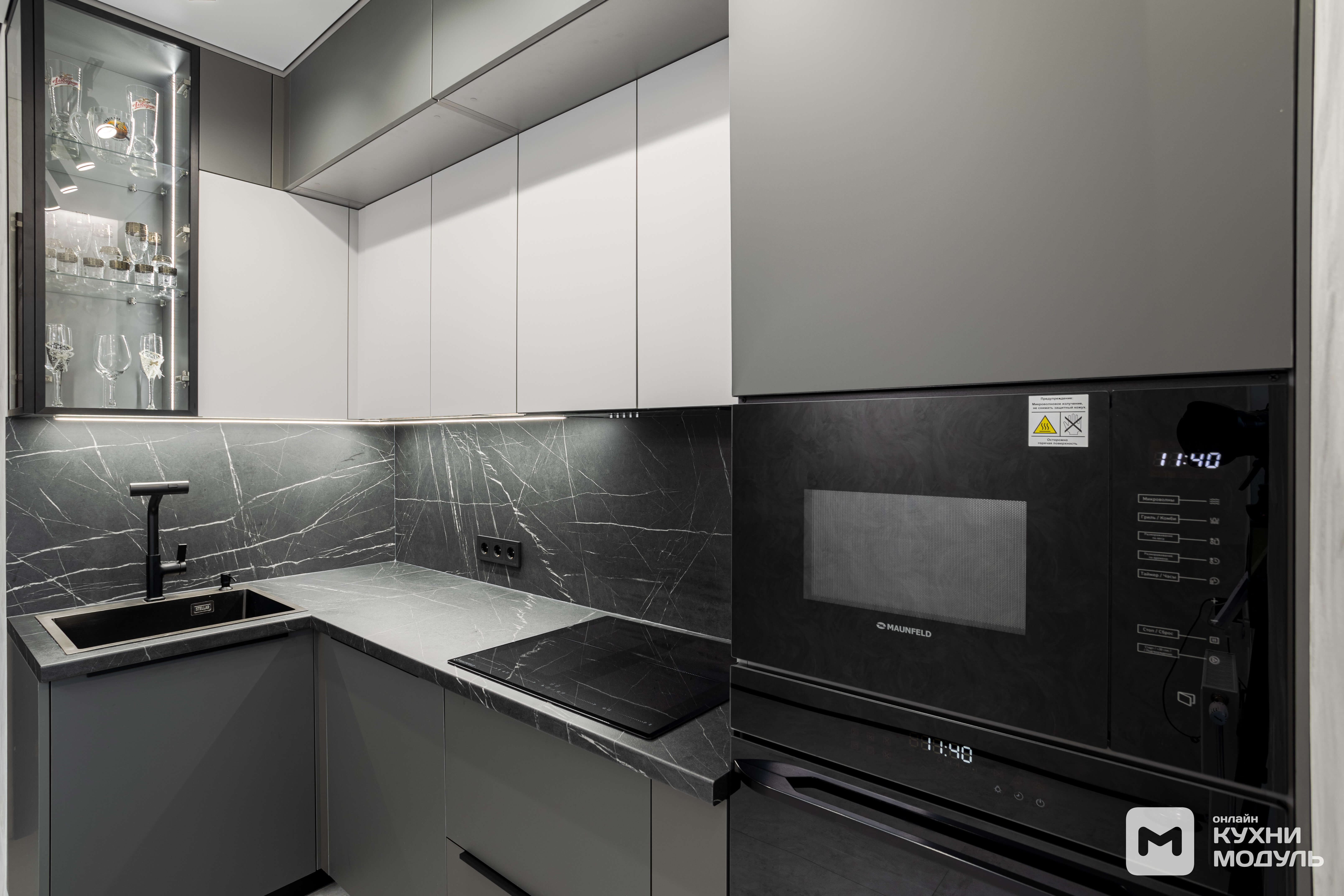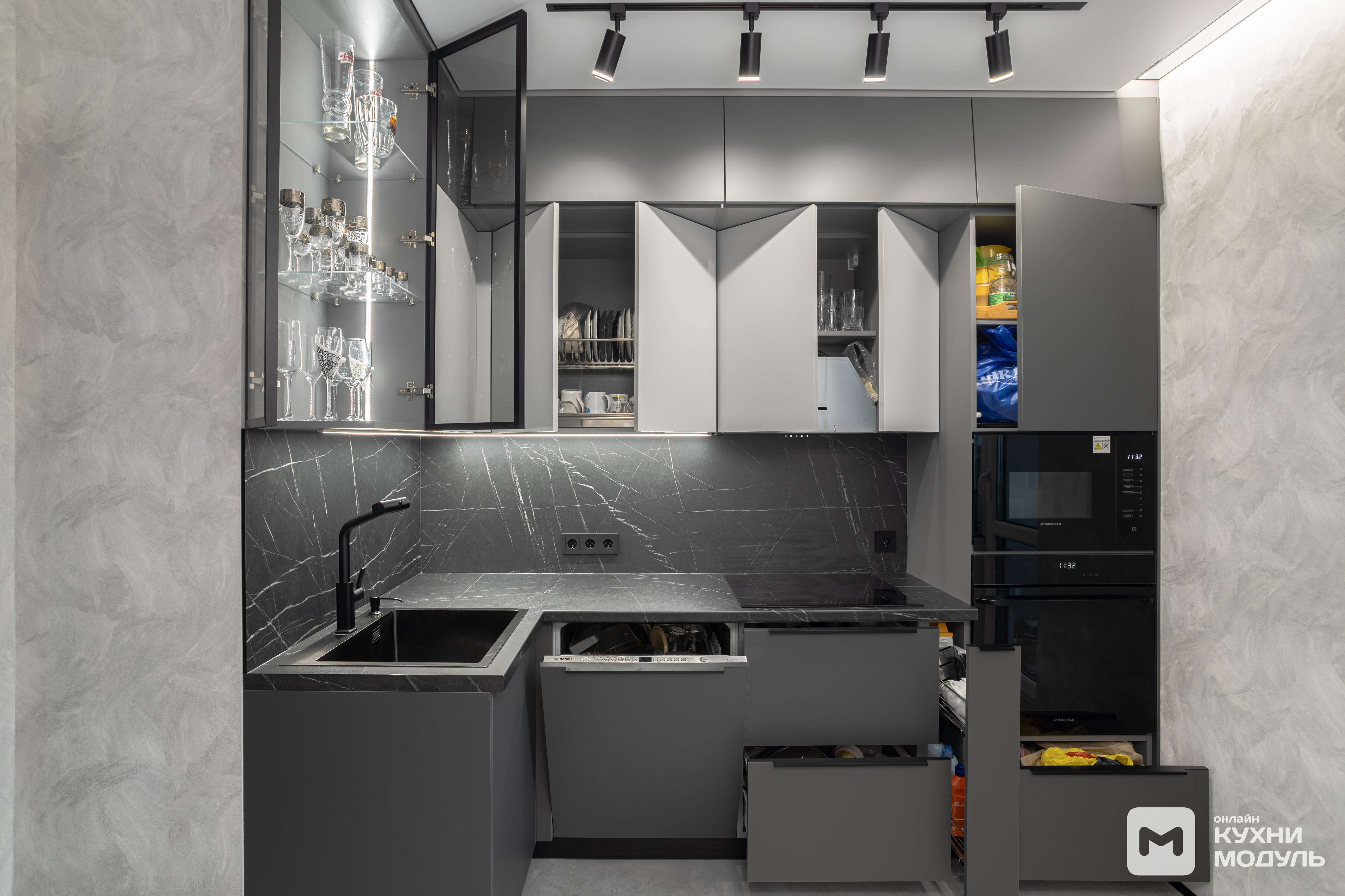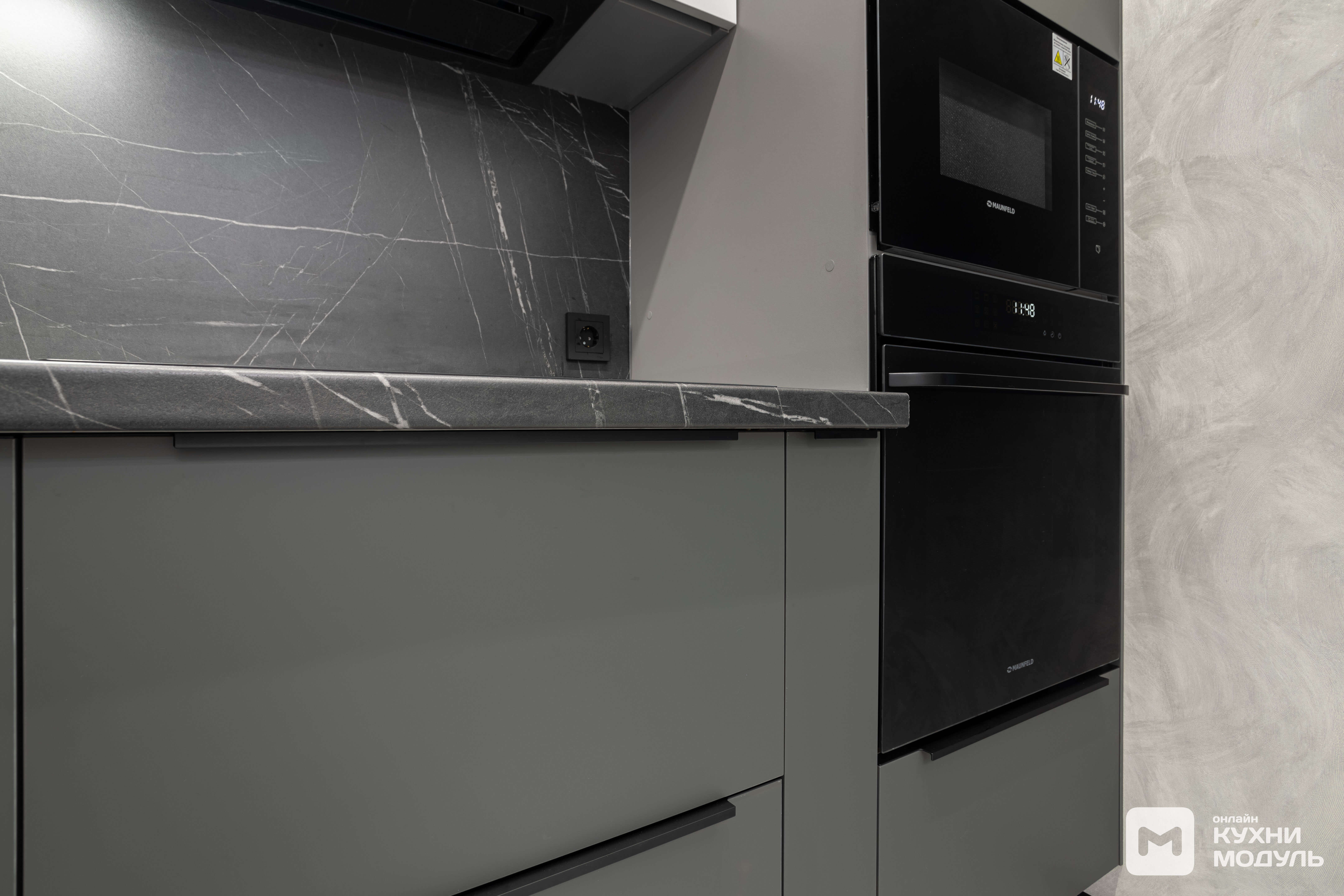 Кухня поставляется со всем необходимым, включая столешницу. Дополнительно подберем бытовую технику и сантехнику.