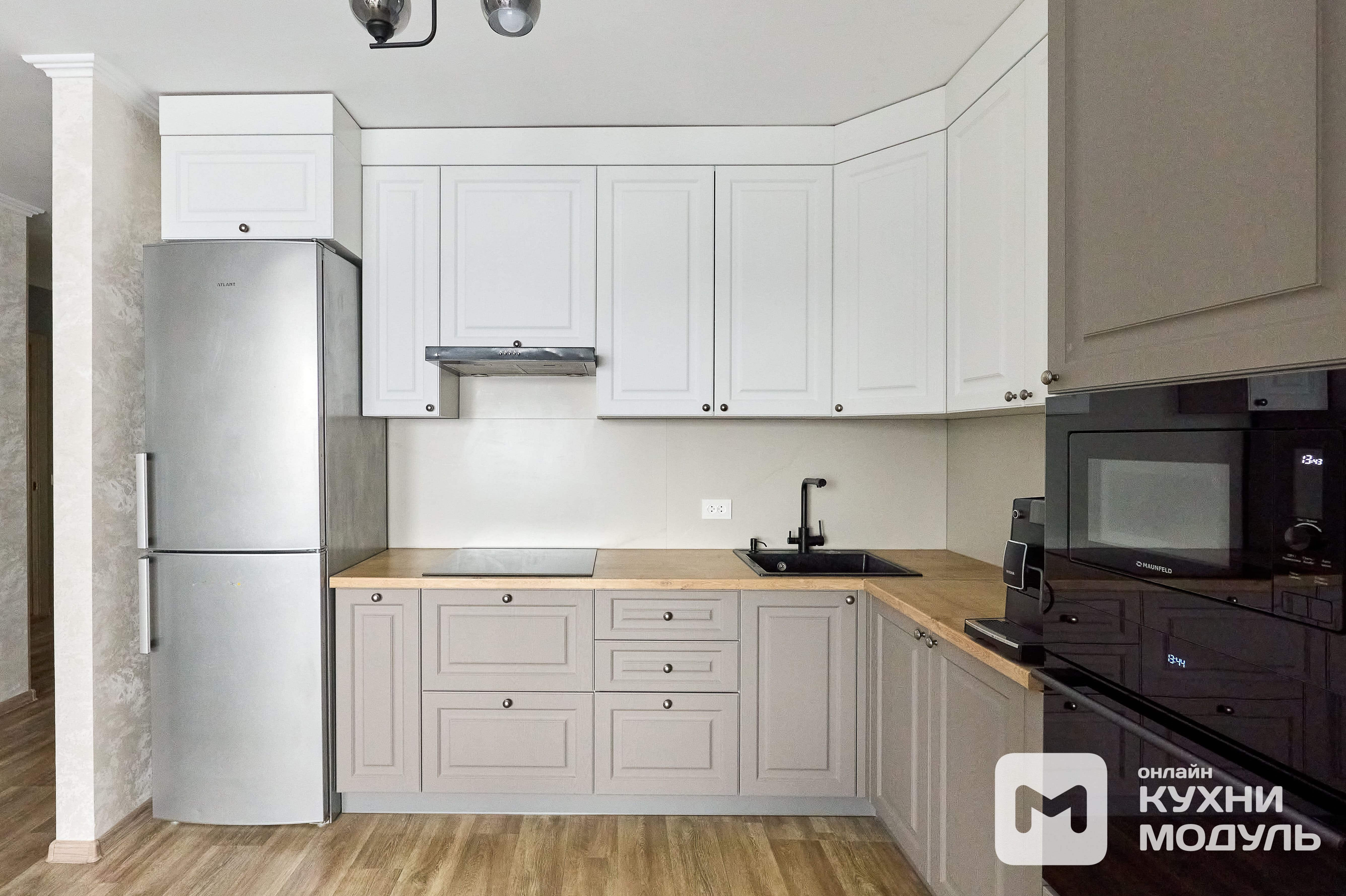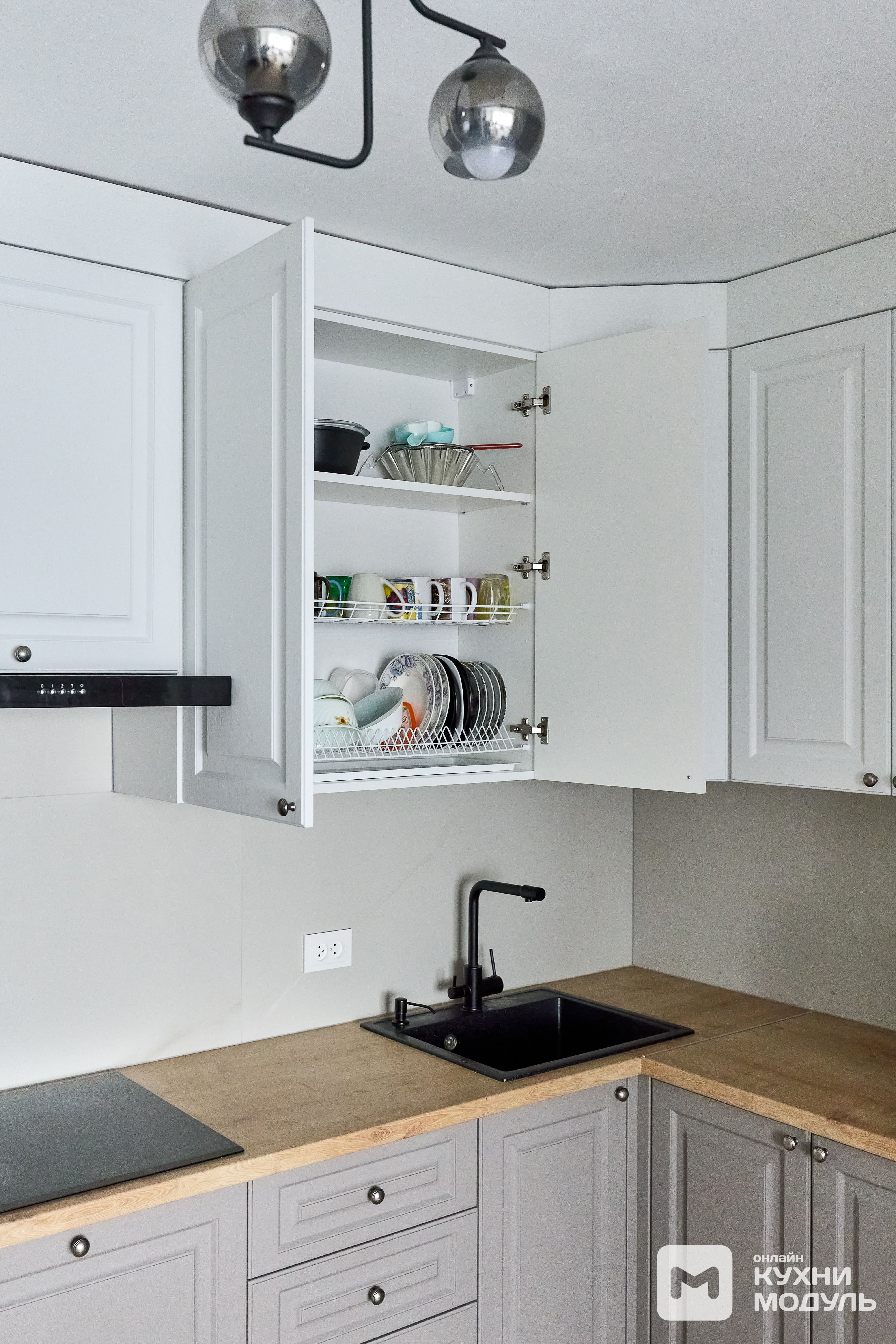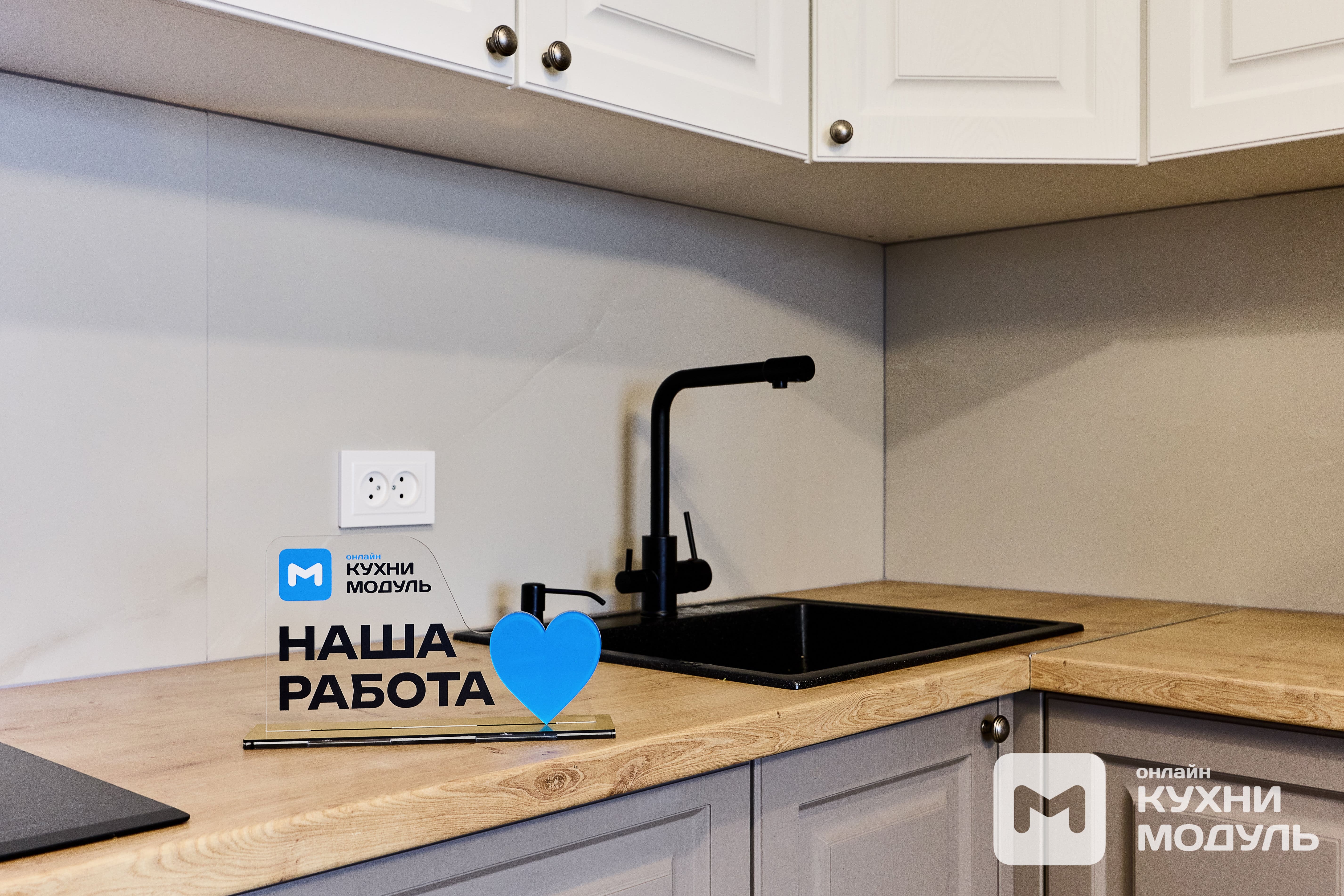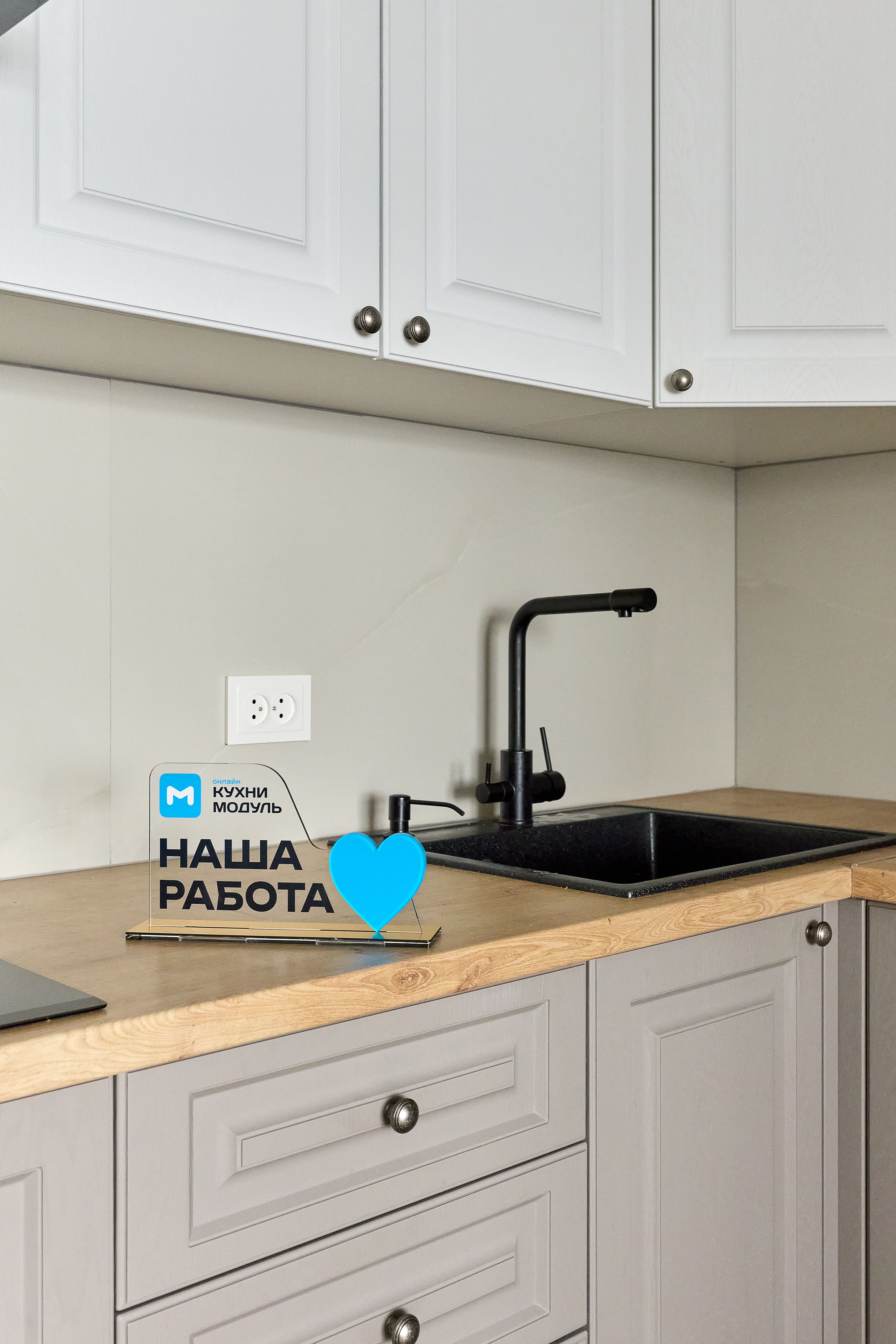 Кухня поставляется со всем необходимым, включая столешницу. Дополнительно подберем бытовую технику и сантехнику.