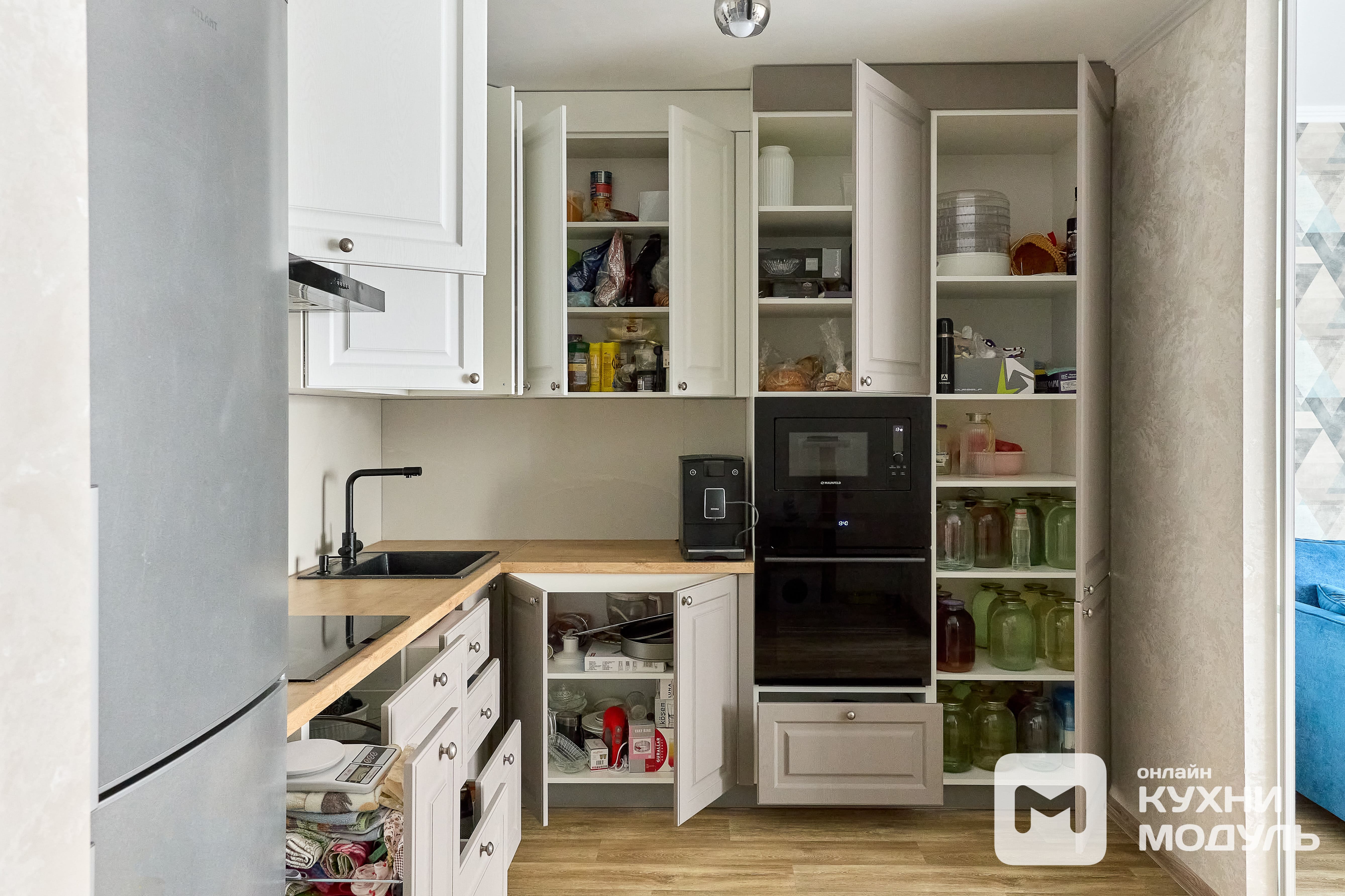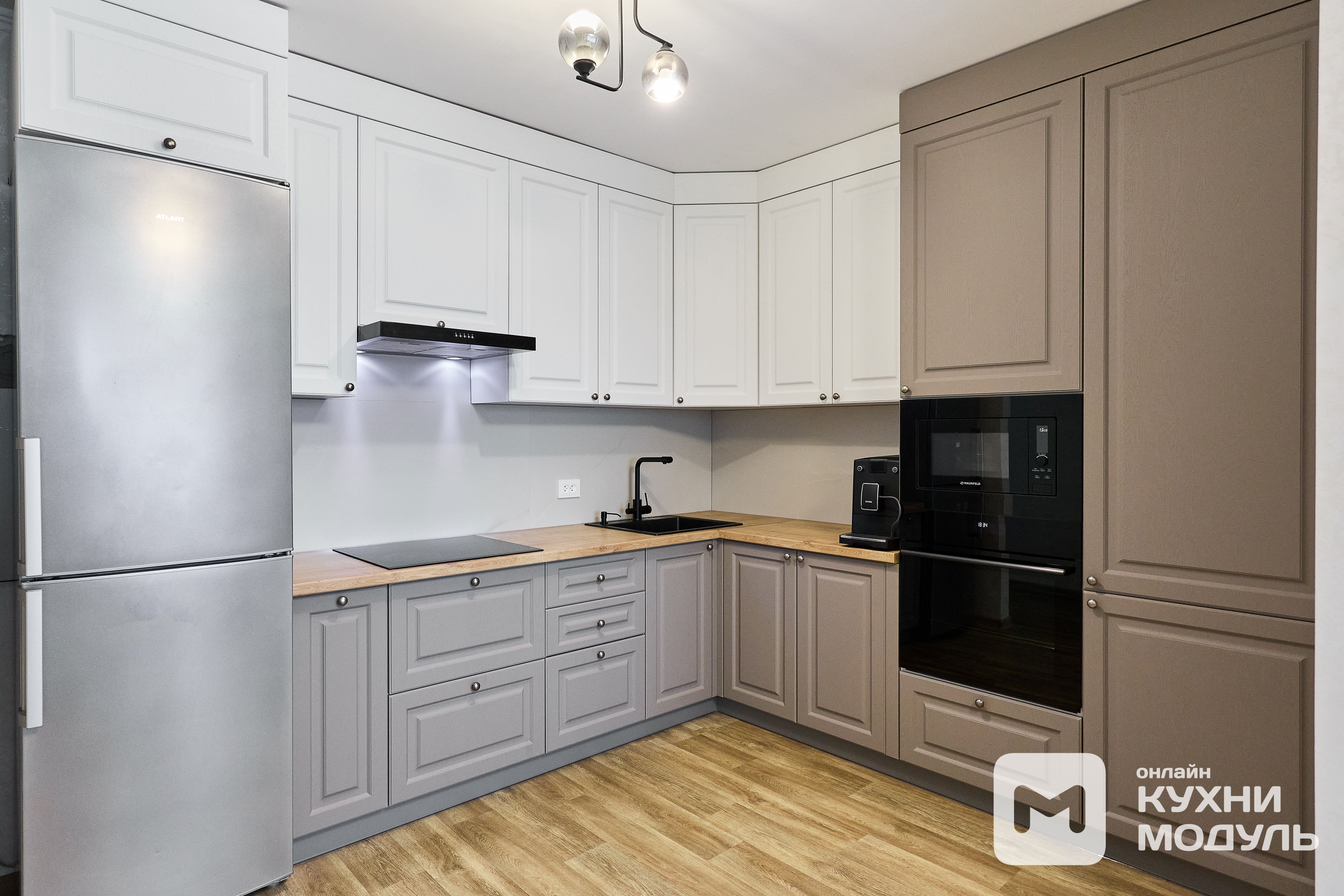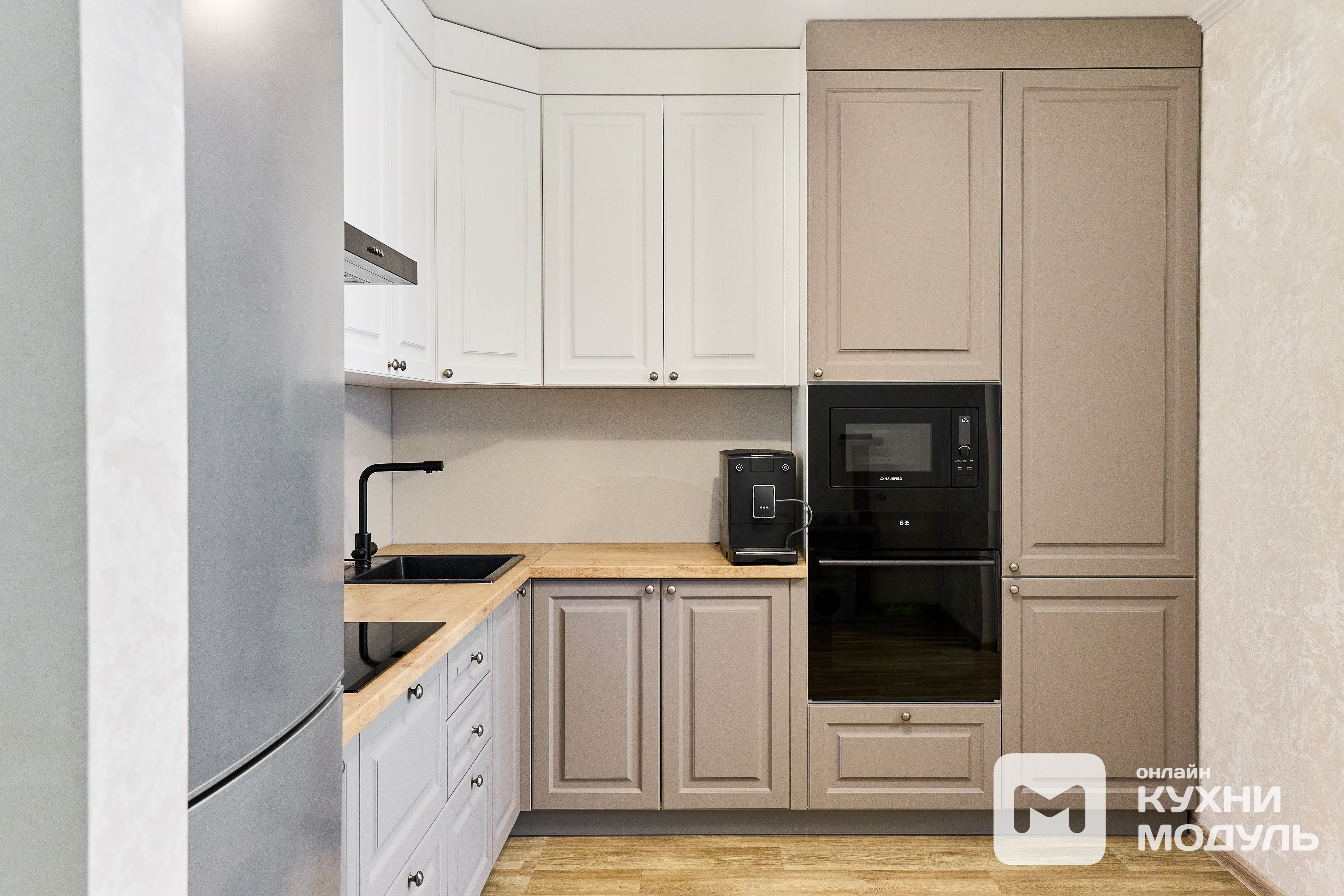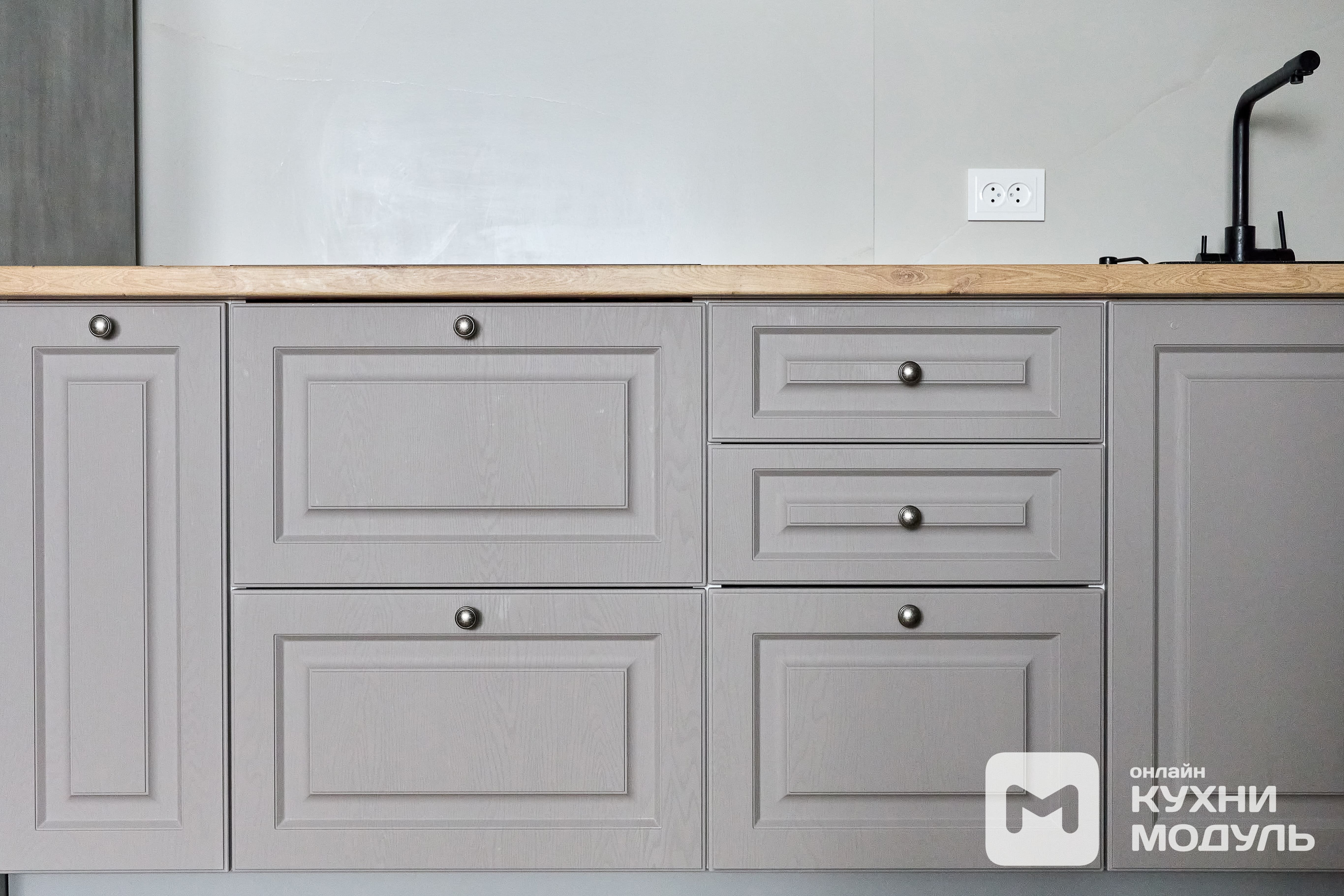 Кухня поставляется со всем необходимым, включая столешницу. Дополнительно подберем бытовую технику и сантехнику.