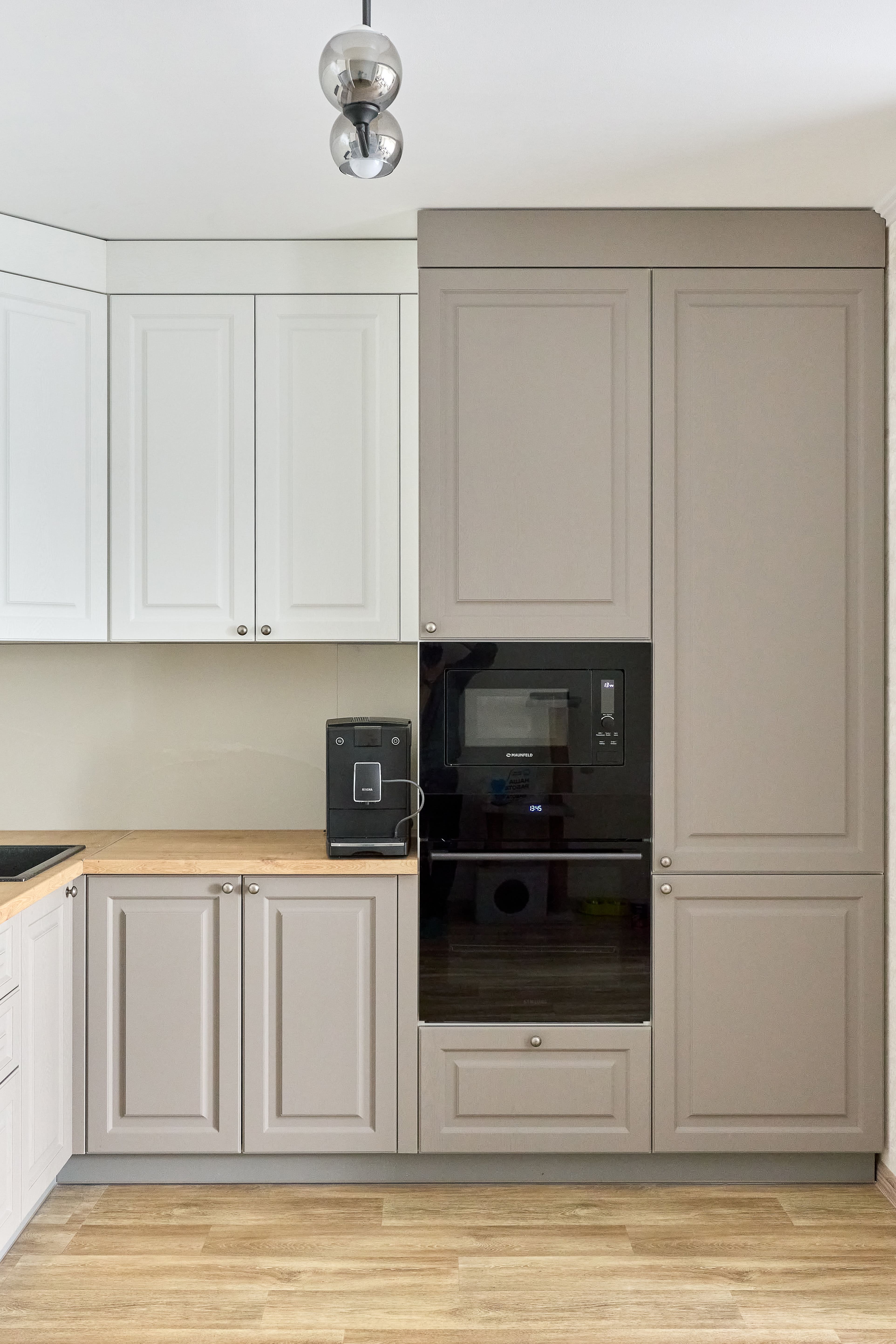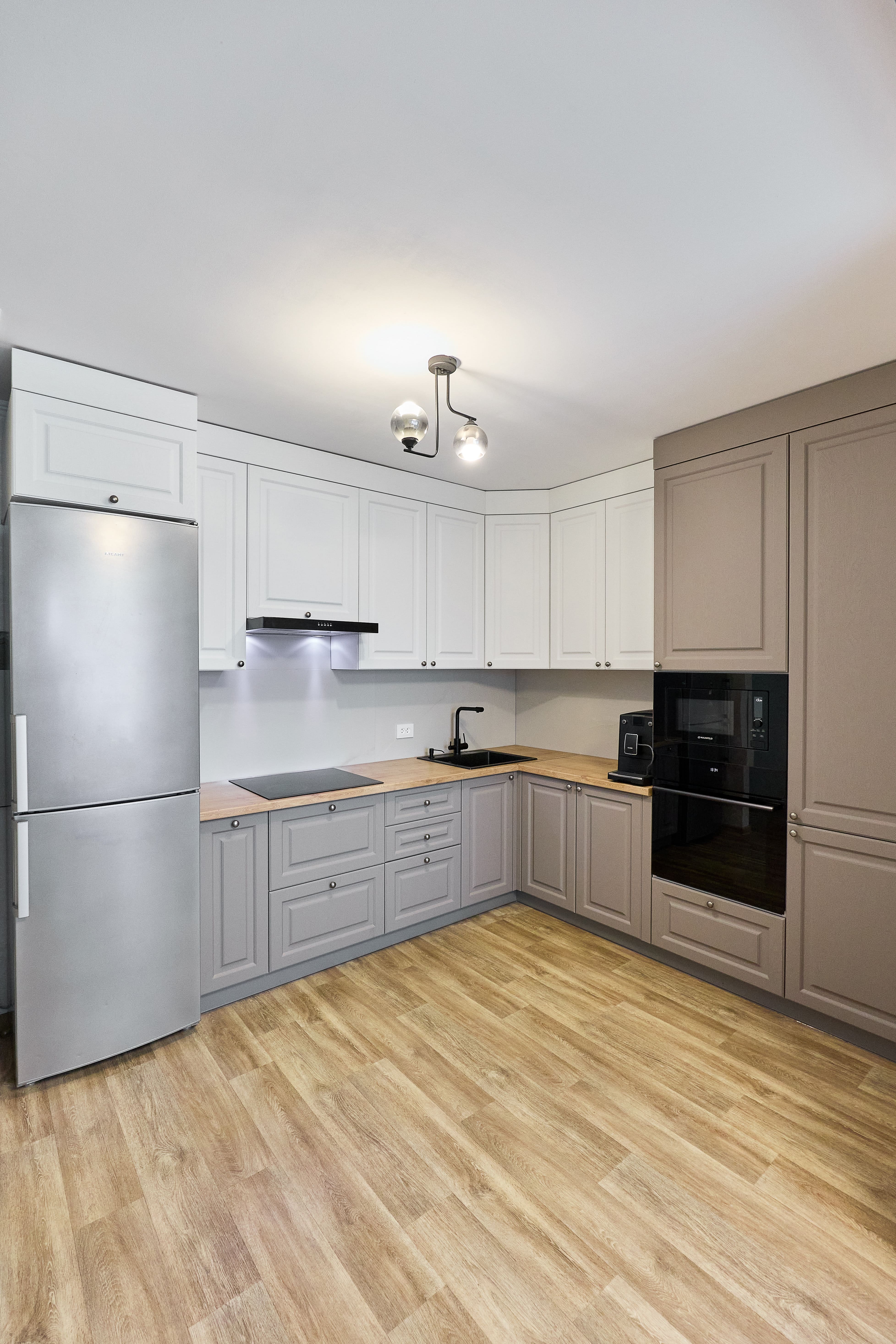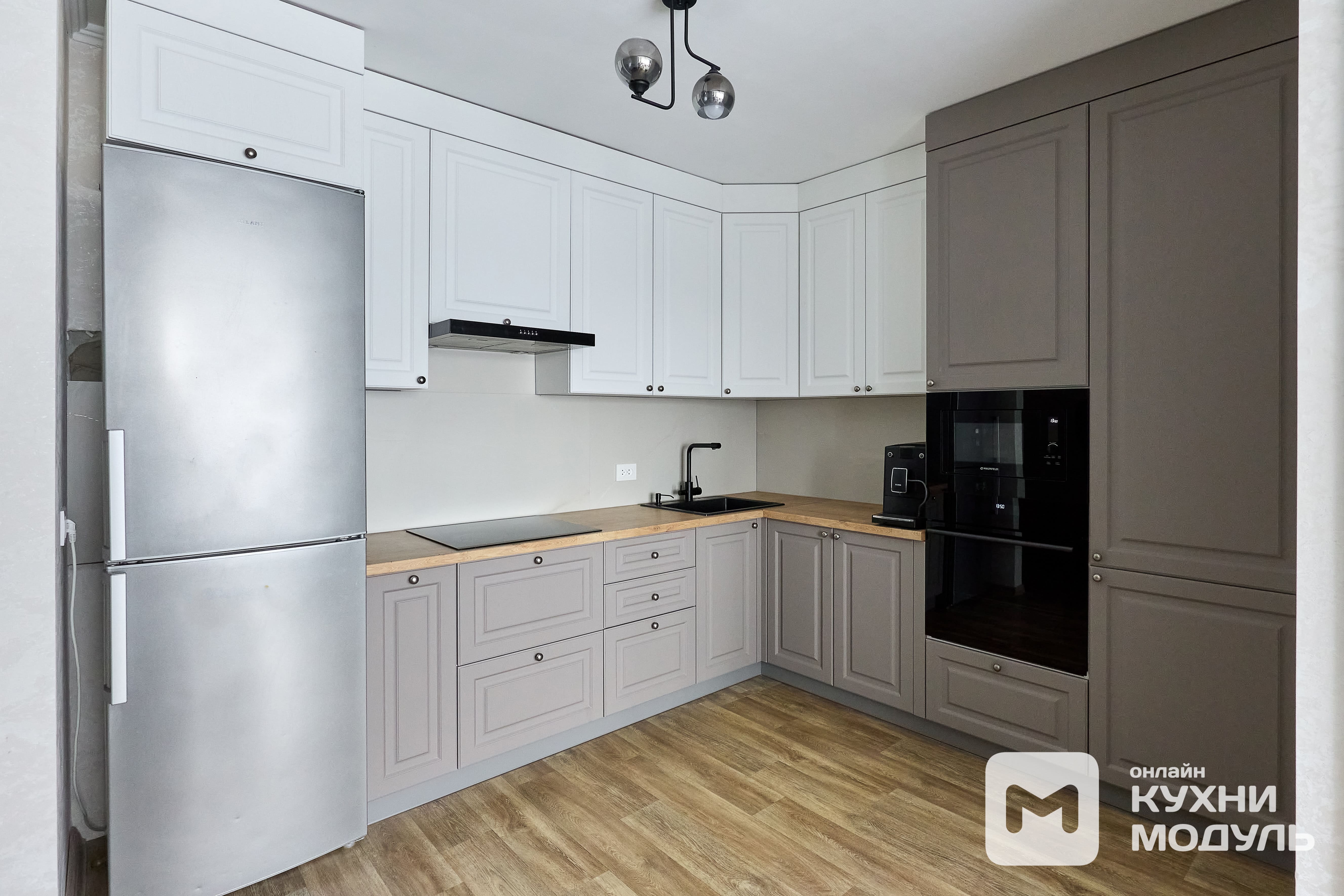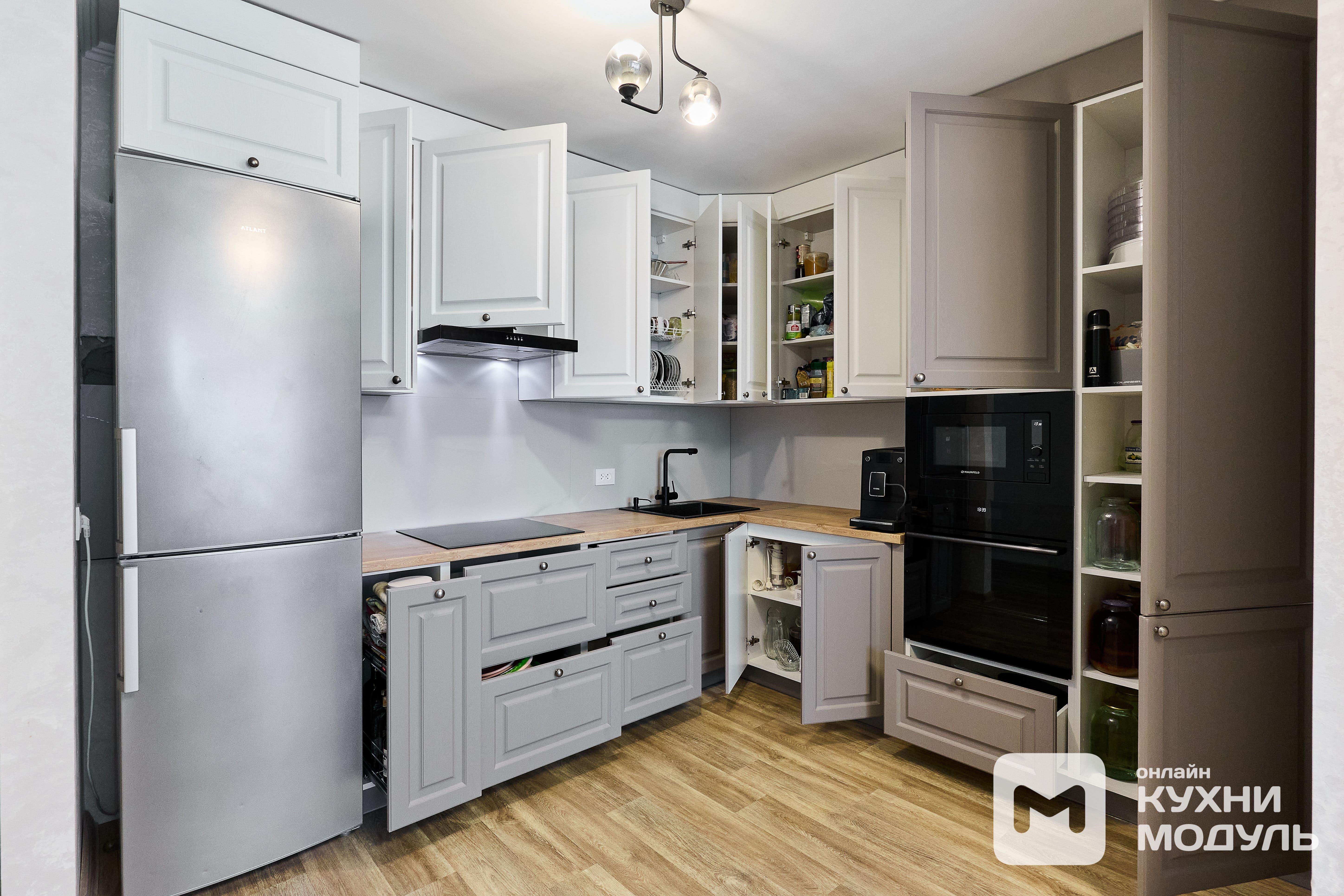 Кухня поставляется со всем необходимым, включая столешницу. Дополнительно подберем бытовую технику и сантехнику.